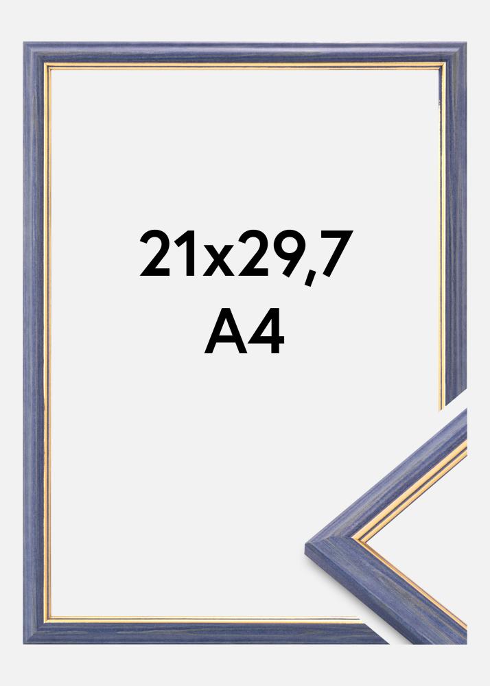 Tento elegantní rám o rozměrech 21x29,7 cm je dokonalou kombinací klasického designu a moderní funkčnosti. S jeho temně modrou povrchovou úpravou a jemnými zlatými detaily podél okraje nabízí sofistikované orámování vašich oblíbených motivů. Úzký, profilovaný rám poskytuje stylový kontrast, který unikátním způsobem zdůrazňuje umělecká díla nebo fotografie. Dřevěná struktura je diskrétně viditelná skrz barvu, což dodává rámečku teplý a živý charakter.