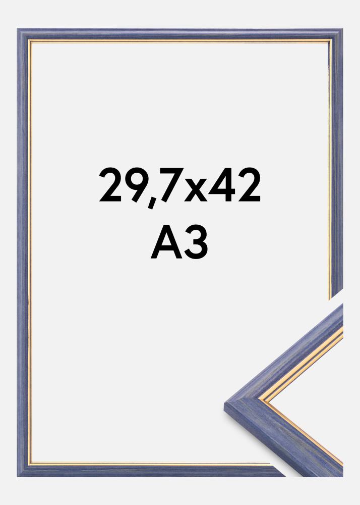 Tento elegantní rám v temně modrém odstínu je dokonalou kombinací klasického designu a moderní funkčnosti. S rozměrem rámečku 29,7x42 cm (A3) je ideální pro zvýraznění vašich oblíbených uměleckých děl nebo fotografií. Úzký, 15 mm široký rám s jemnými zlatými detaily podél okraje dodává sofistikovaný pocit a vytváří stylový kontrast k motivu. Dřevěná struktura je diskrétně viditelná skrze barvu, což dodává rámečku teplý a živý charakter.
