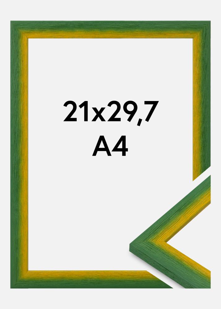 Tento fotorám o rozměru 21x29,7 cm (A4) je dokonalou kombinací moderního designu a přírodní krásy. Díky své Zelená barvě a zlatavě Žlutá tónům elegantně zvýrazňuje přirozenou strukturu dřeva. Úzký profil s Rámovou lištou o šířce 23 mm a hloubce 13 mm dodává stylový a čistý vzhled, který nechává vaše motivy vyniknout.