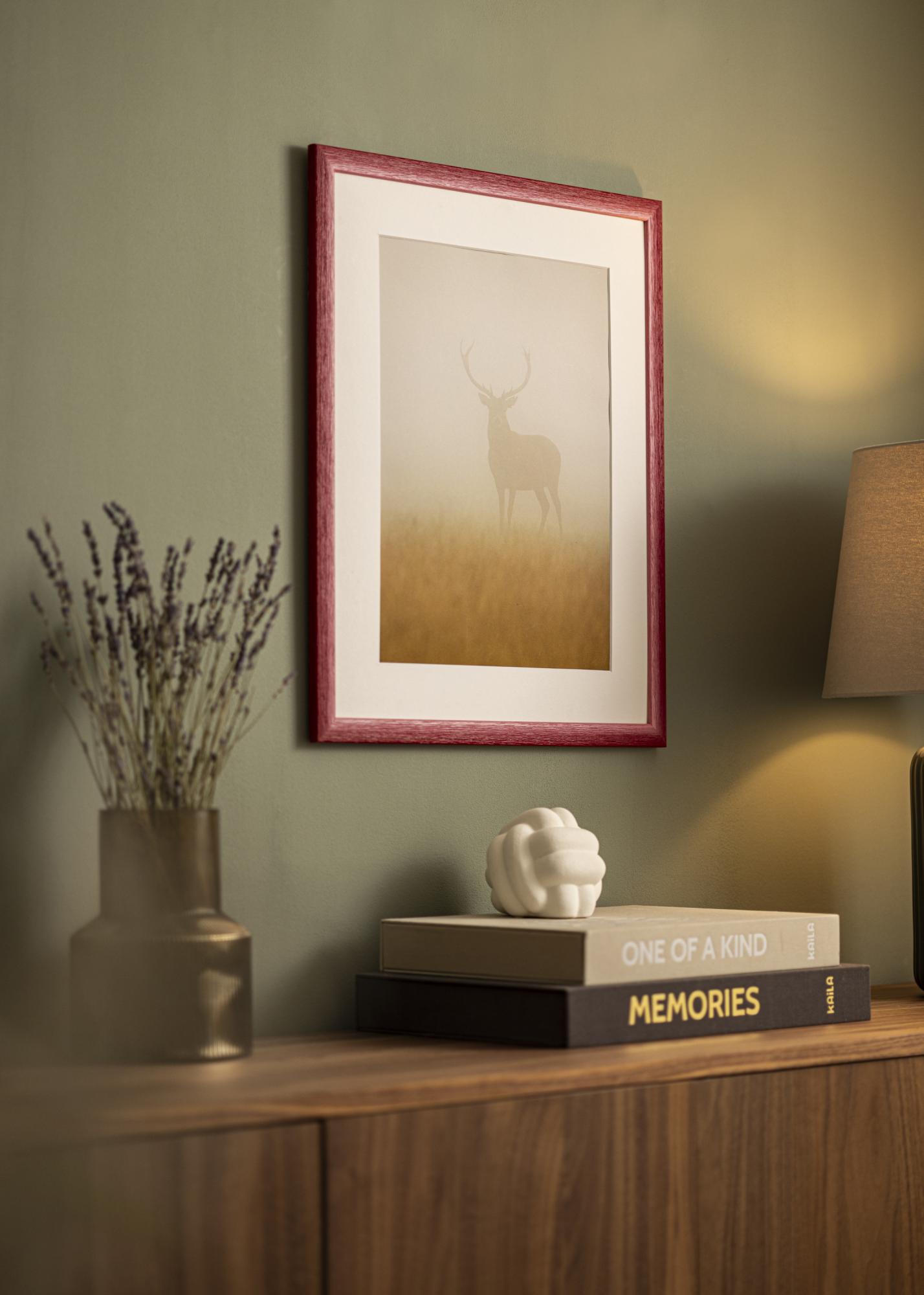 Naše na míru vyrobená rám na obrazy Cornwall Tmavě červená je ideálním řešením pro ty, kteří hledají jedinečné a osobní rámování. Se svou hlubokou červenou barvou a jemnými změnami nabízí tento fotorám živý výraz, který upoutá oko. Přirozená dřevěná struktura ayosu se svými krásnými žilkami posiluje rustikální vzhled a dodává pocit autenticity.