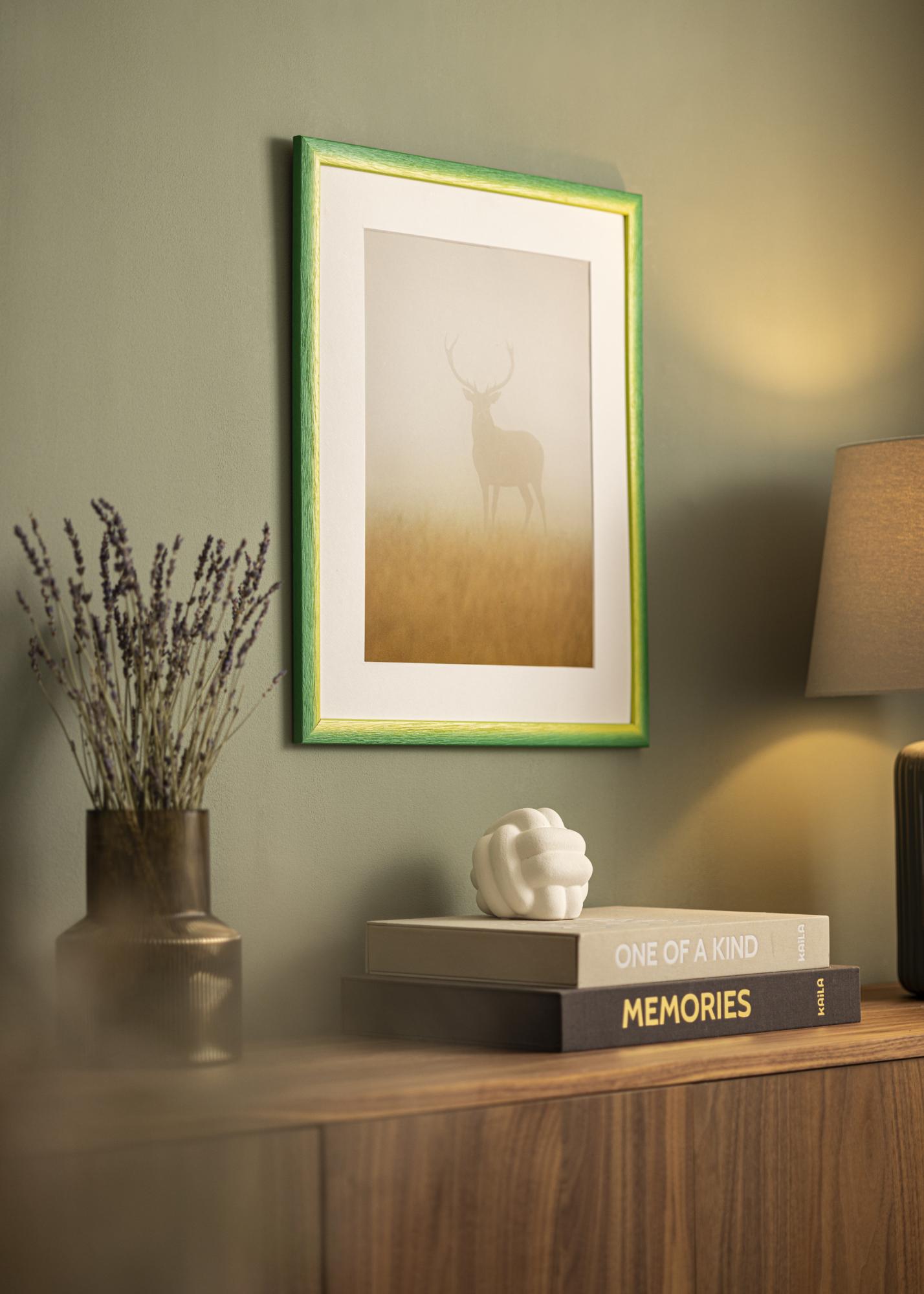 Objevte náš rám obrazu na míru Cornwall Zelený, jedinečný fotorám, který se vyrábí přímo v naší vlastní rámárně. Se svou živou barevnou škálou, kde slunečně žluté tóny plynule přecházejí do svěží zelené, se tento rám stává samotným uměleckým dílem. Výrazná struktura dřeva s hlubokými žilkami poskytuje hmatový pocit a ručně malovaný efekt, který posiluje organický výraz.