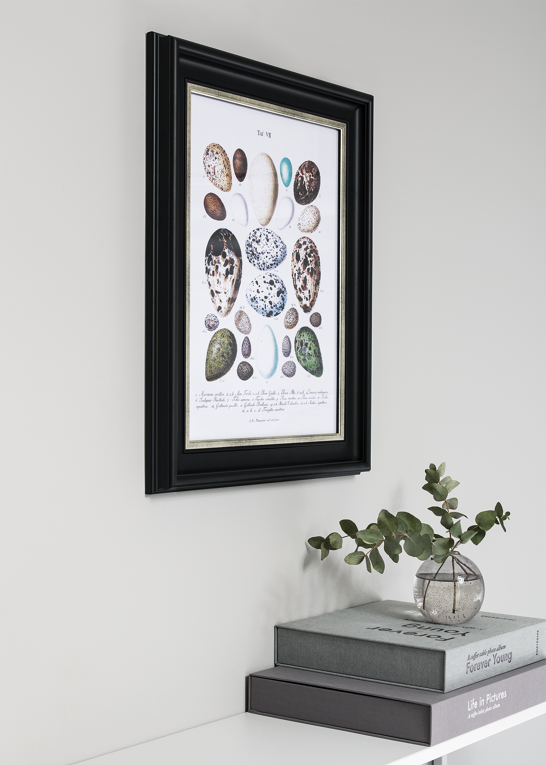 Dalarna Černá-Stříbrná je opravdu exkluzivní fotorámeček se širokým černým profilem o celých 57 mm a elegantním stříbrným okrajem blízko motivu. Perfektní, když hledáte luxusní rám, který si rádi zavěsíte na zeď v obývacím pokoji a který se skvěle hodí k zvýraznění vašich nejlepších obrázků. Rám je vyroben ve Švédsku společností Galleri1, což zaručuje stylový švédský design a vysokou kvalitu.