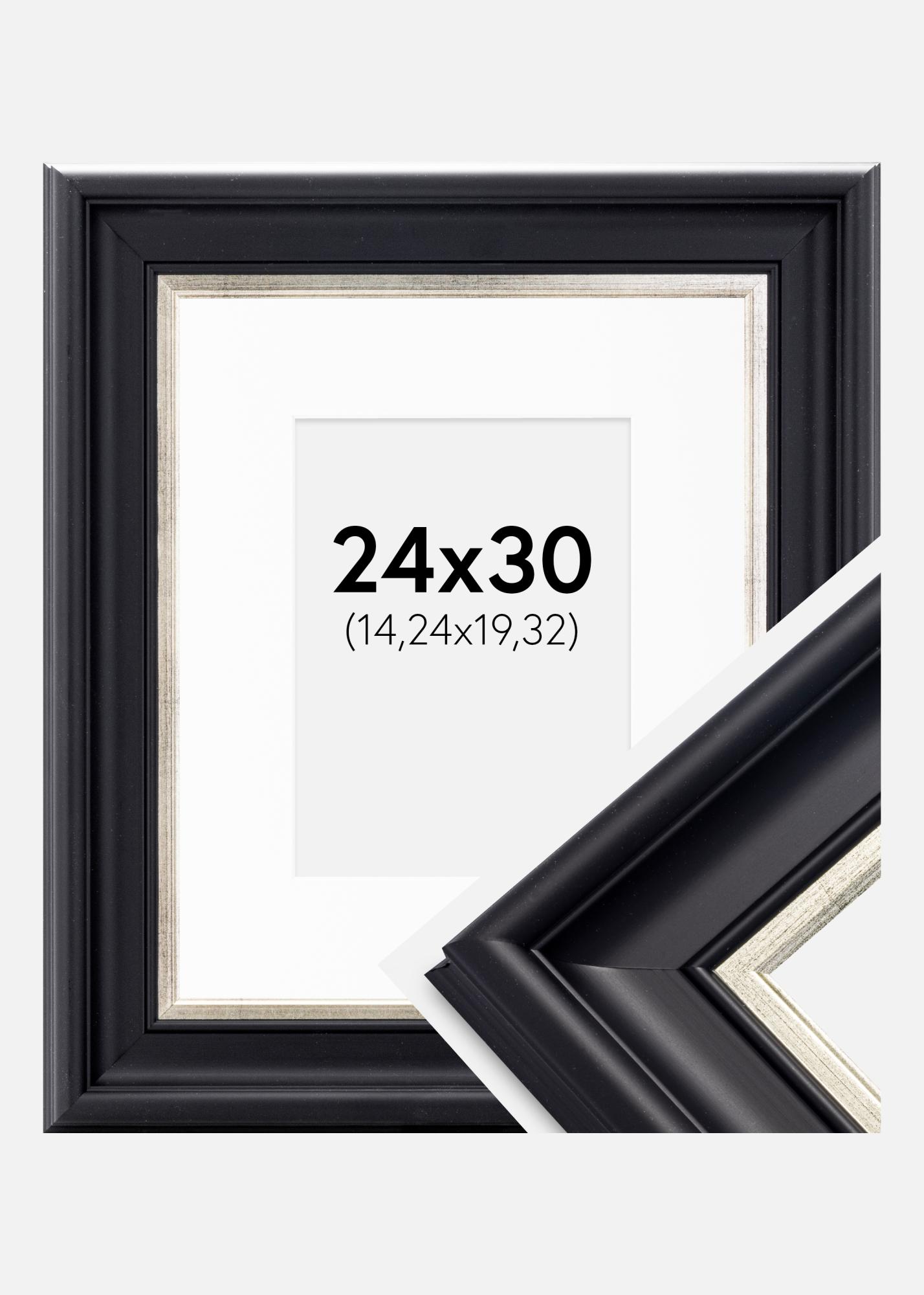 Rám Dalarna Cerno-stríbrná 24x30 cm - Pasparta Bílá 6x8 inches