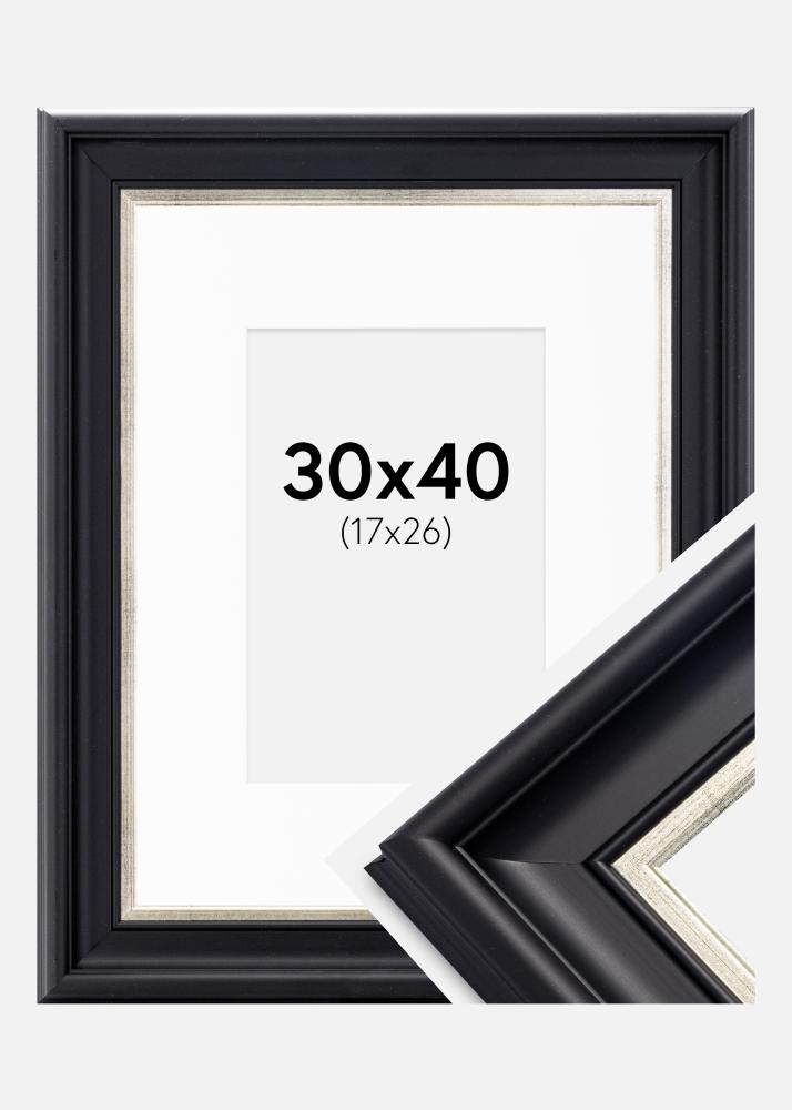 Rám Dalarna Cerno-stríbrná 30x40 cm - Pasparta Bílá 18x27 cm
