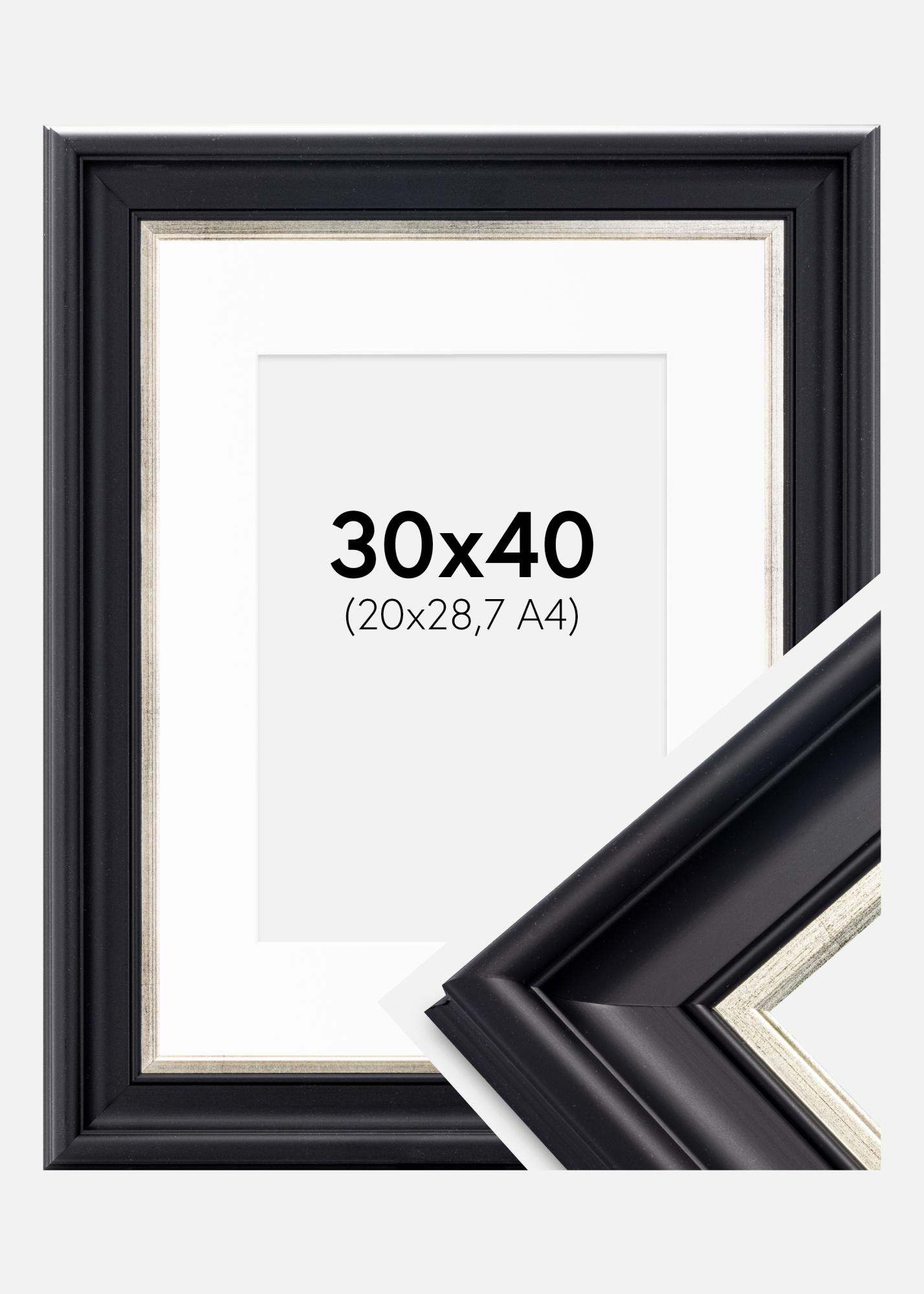 Rám Dalarna Cerno-stríbrná 30x40 cm - Pasparta Bílá 21x29,7 cm (A4)