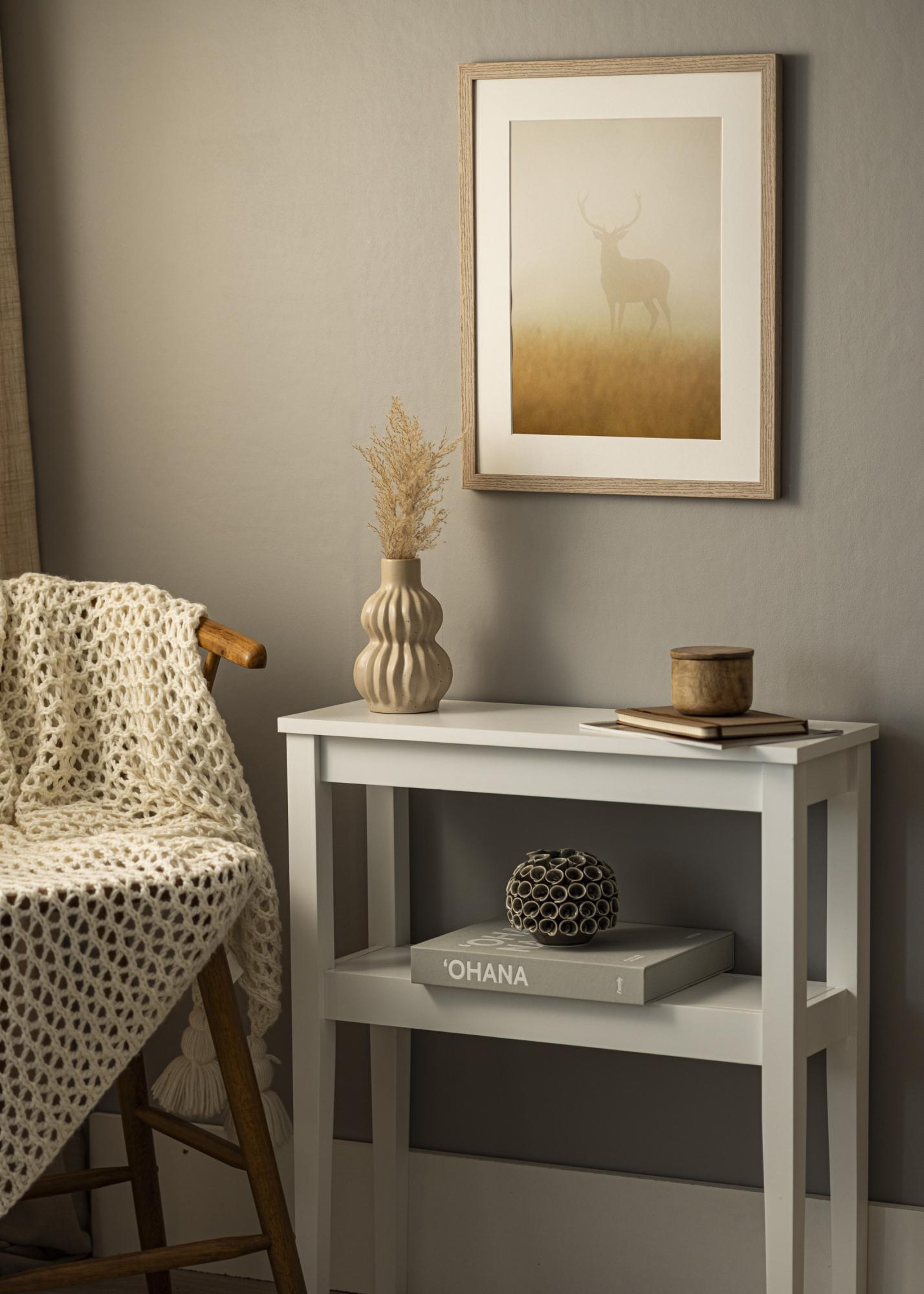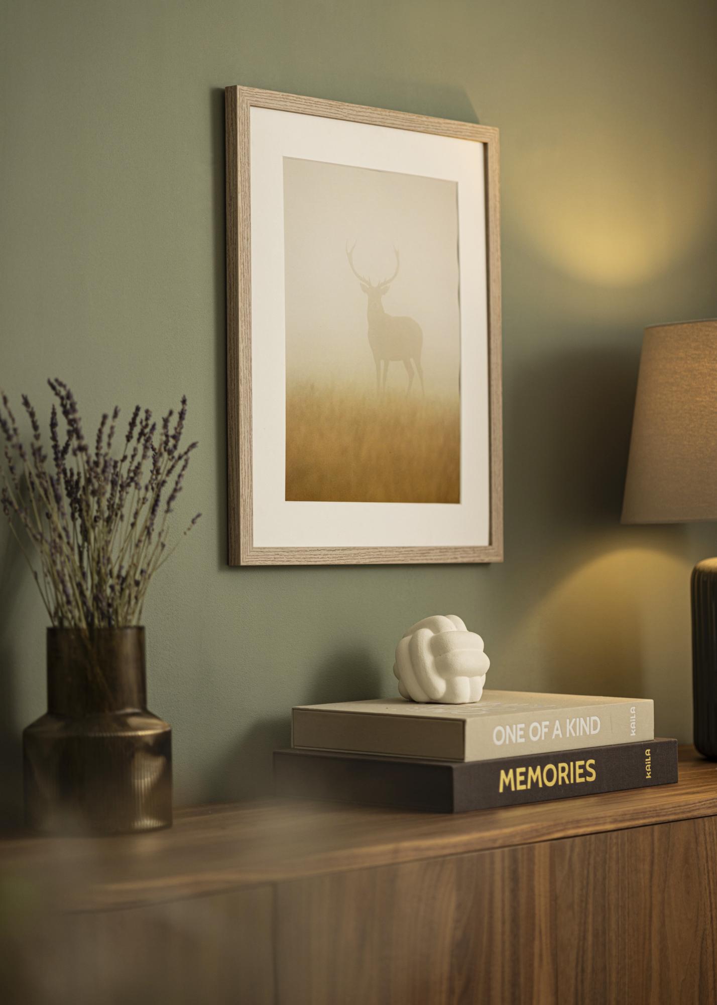 Rám má 20 mm široký lištu a hloubku 20 mm, což zajišťuje stabilní a robustní pocit. Vyrobeno z vysoce kvalitního dřeva ayo, tento rám na obrazy je jak trvanlivý, tak esteticky přitažlivý. Matný povrch zesiluje přirozený dojem a vkusně zvýrazňuje žilkování dřeva.