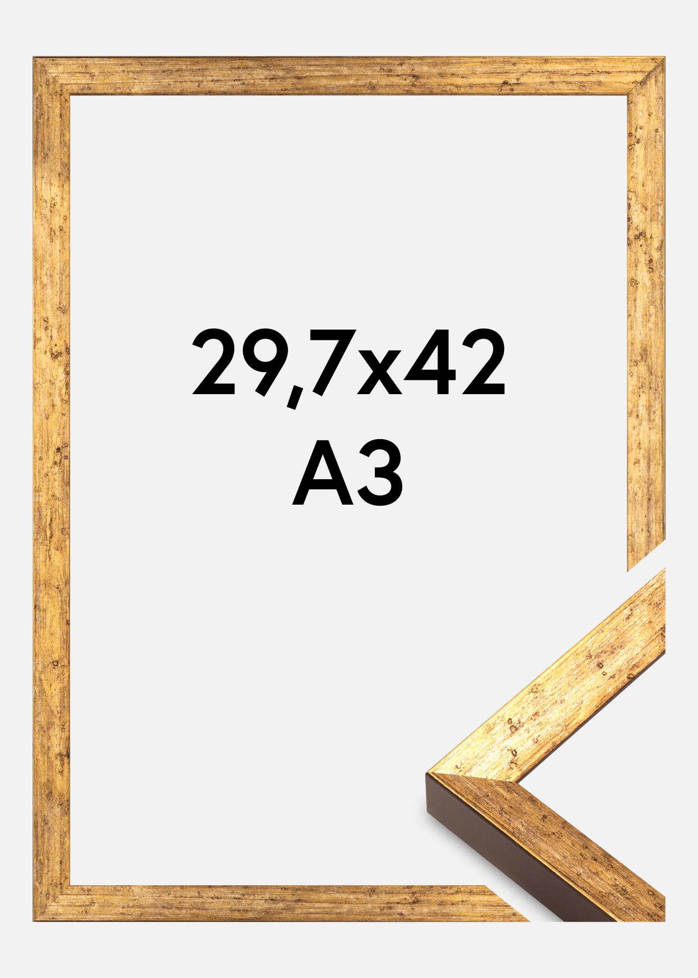 Tento elegantní rám ve zlaté barvě je dokonalou kombinací vintage pocitu a moderního designu. Se svým zestárlým zlatým povrchem a jemně zdrsněným povrchem dodává rustikální a nadčasový šarm, který dokonale zapadá jak do klasických, tak do moderních interiérů. Rám je vyroben ze dřeva a má úzký profil s rámovou lištou, která je 20 mm široká a má hloubku 24 mm. Tento obrazový rám je ideální pro zvýraznění uměleckých děl nebo fotografií s antickým nádechem.
