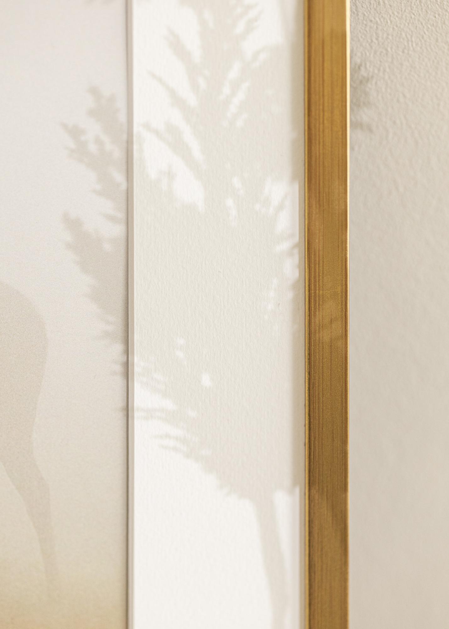 S touto lesklou zlatou rámem dodáte svým motivům rámování, které je jak trendy, tak stylové. Hodí se stejně dobře samostatně na zeď jako v kombinaci s jinými rámy na obrazové stěně. Pokud zlato kombinujete s rámy v jiných barvách, získáte extra zajímavý výsledek.