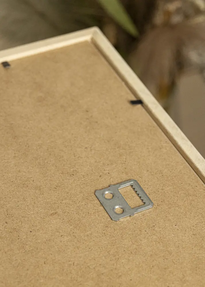 Rám má matný povrch a je vybaven kovovými závěsy na zadní straně pro vodorovné i svislé zavěšení.