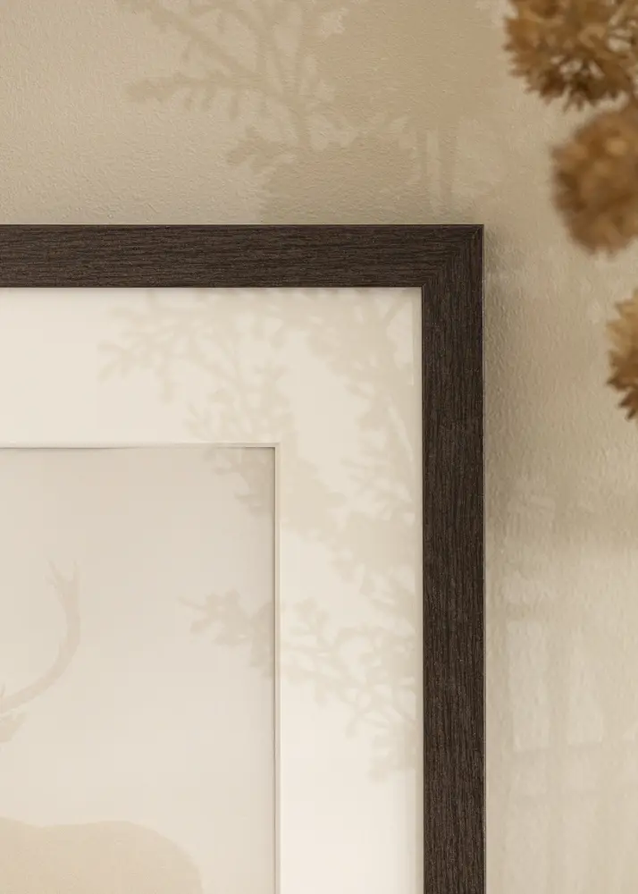 Rám je dodáván s bílým paspartem, které vkusně orámuje vaše fotografie. Pasparta je přizpůsobena pro fotografie o velikosti 42x59,4 cm (A2), což poskytuje krásný kontrast k hnědému rámu a elegantně zvýrazňuje motiv.