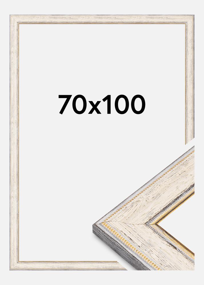 Tento krásný rám je dokonalou kombinací vintage inspirace a moderní elegance. S jeho rustikálním bílým a šedým dřevěným provedením, doplněným jemnými zlatými detaily podél vnitřního okraje, nabízí okouzlující vzhled se stopou času. Rám je navržen pro motivy o velikosti 70x100 cm, což ho činí ideálním pro zvýraznění vašich oblíbených fotografií nebo uměleckých děl s nadčasovým a sofistikovaným nádechem.