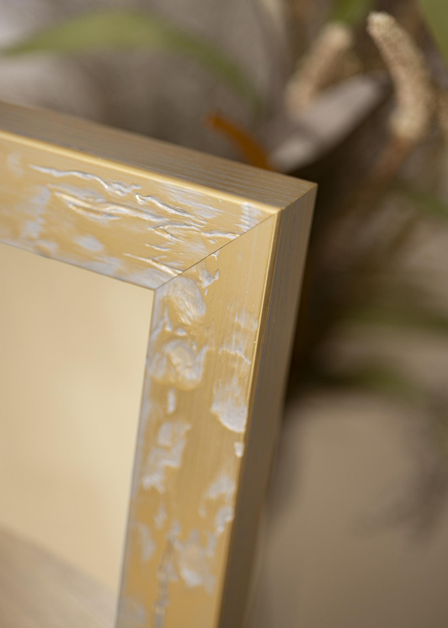 Freja je krásný zlatý rám s nerovnoměrným žilkovaným povrchem se stříbrnými nerovnostmi. Díky kombinaci stříbrné a zlaté barvy má Freja příjemný odstín, který tíhne více ke stříbru než ke zlatu. S hlubokým profilem 30 mm vyčnívá Freja Zlatý kus od zdi, což vytváří úžasný 3D efekt. Rám zahrnuje sklo a zadní panel.