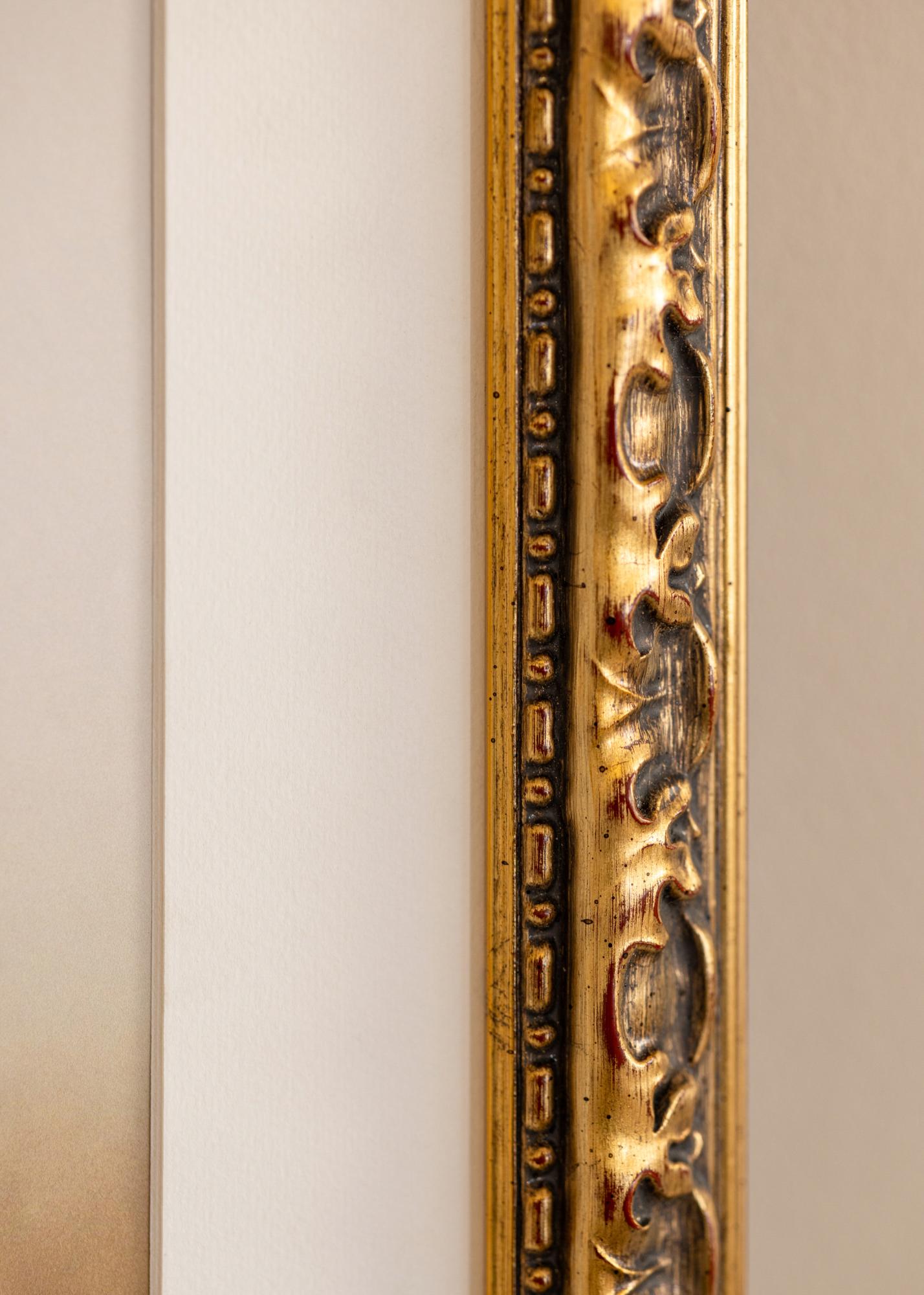 Rám Freyja Gold je elegantní a stylový fotorámeček, který poskytne vašim obrázkům luxusní rámování. S jeho zlatým povrchem a komplikovanými ornamenty se stane poutavým prvkem v jakékoli místnosti. Antická úprava s tmavými patinovanými detaily a jemnými červenými prvky posiluje rustikální charakter rámu a dodává mu nadčasové kouzlo.