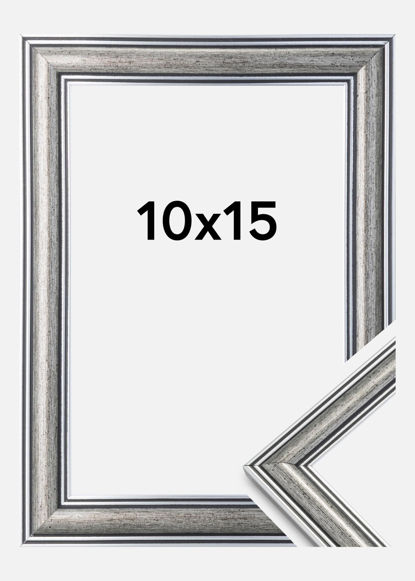 Spusťte výběr rámu »Frigg je stříbrný rám s černými liniemi a černo-skvrnitými prvky. Skvěle se hodí, když hledáte široký tradiční stříbrný rám, který se hodí k mnoha typům obrázků a prostředí.