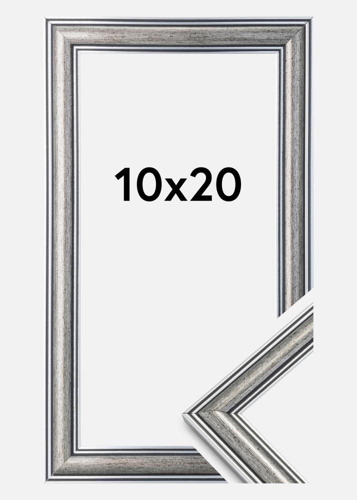 Spusťte výběr rámu »Frigg je stříbrný rámeček s černými liniemi a černě skvrnitými prvky. Hodí se výborně, když hledáte široký tradiční stříbrný rámeček, který se hodí k mnoha typům obrázků a prostředí.
