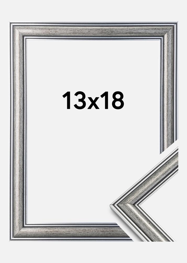 Frigg je stříbrný rámeček s černými liniemi a černě skvrnitými prvky. Perfektně se hodí, když hledáte široký tradiční stříbrný rámeček, který se hodí k mnoha typům obrázků a prostředí.
