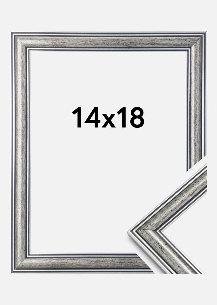 Frigg je stříbrný rám s černými liniemi a černě skvrnitými prvky. Skvěle se hodí, když hledáte široký tradiční stříbrný rám vhodný pro mnoho typů obrázků a prostředí.