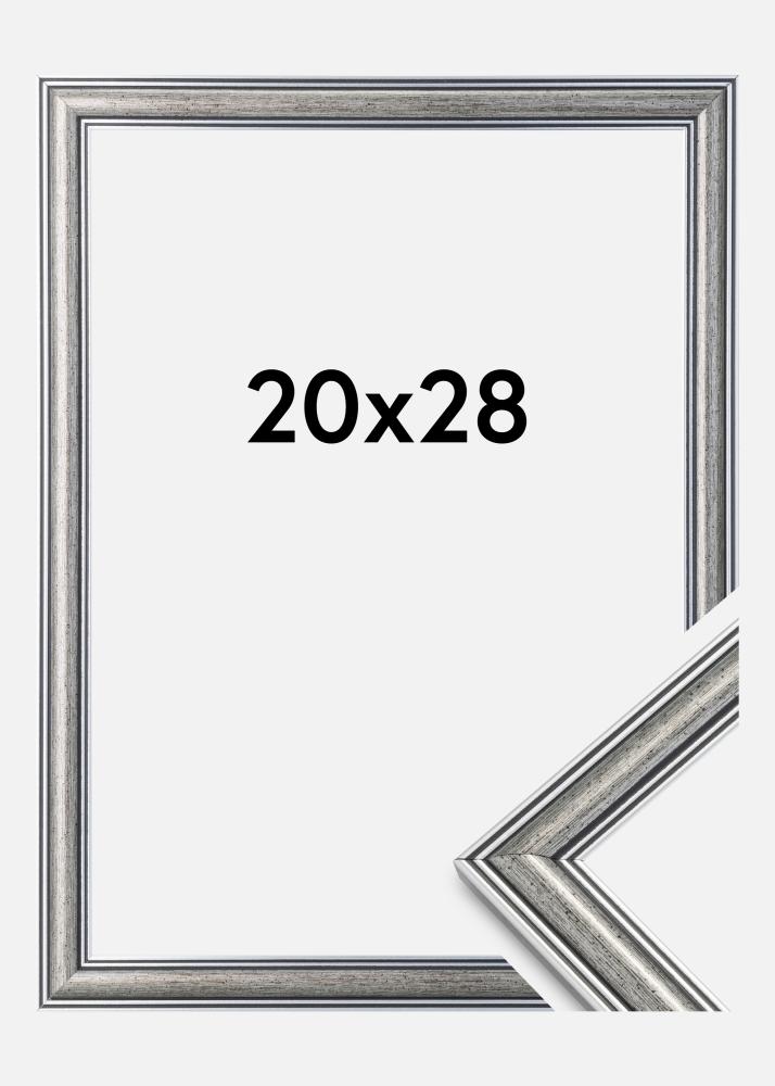 Spusťte výběr rámu »Frigg je stříbrný rámeček s černými liniemi a černými skvrnitými prvky. Skvěle se hodí, když hledáte široký tradiční stříbrný rámeček vhodný pro různé typy obrázků a prostředí.