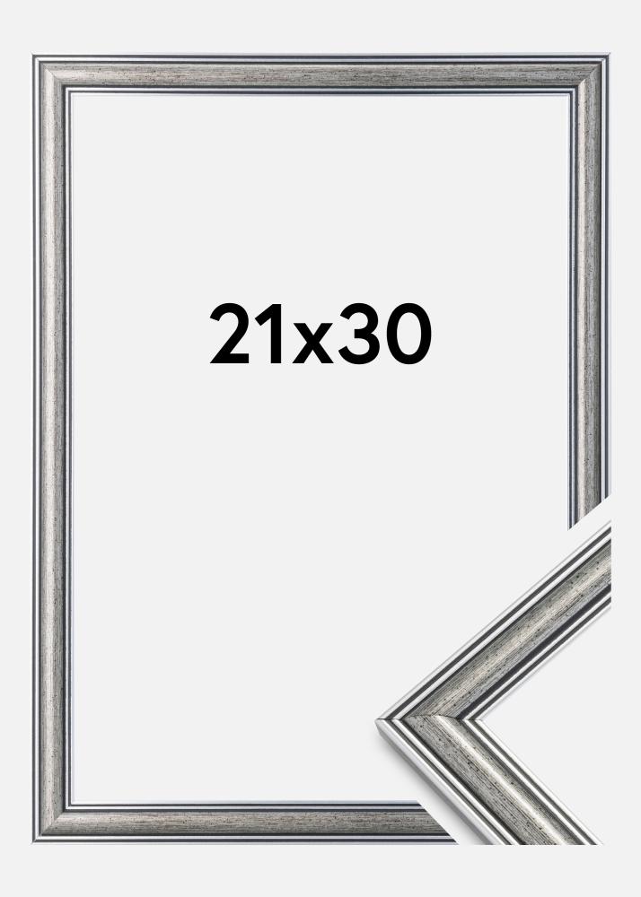 Spusťte výběr rámu »Frigg je stříbrný rám s černými liniemi a černě tečkovanými prvky. Skvěle se hodí, pokud hledáte široký tradiční stříbrný rám, který se hodí pro mnoho typů obrázků a prostředí.