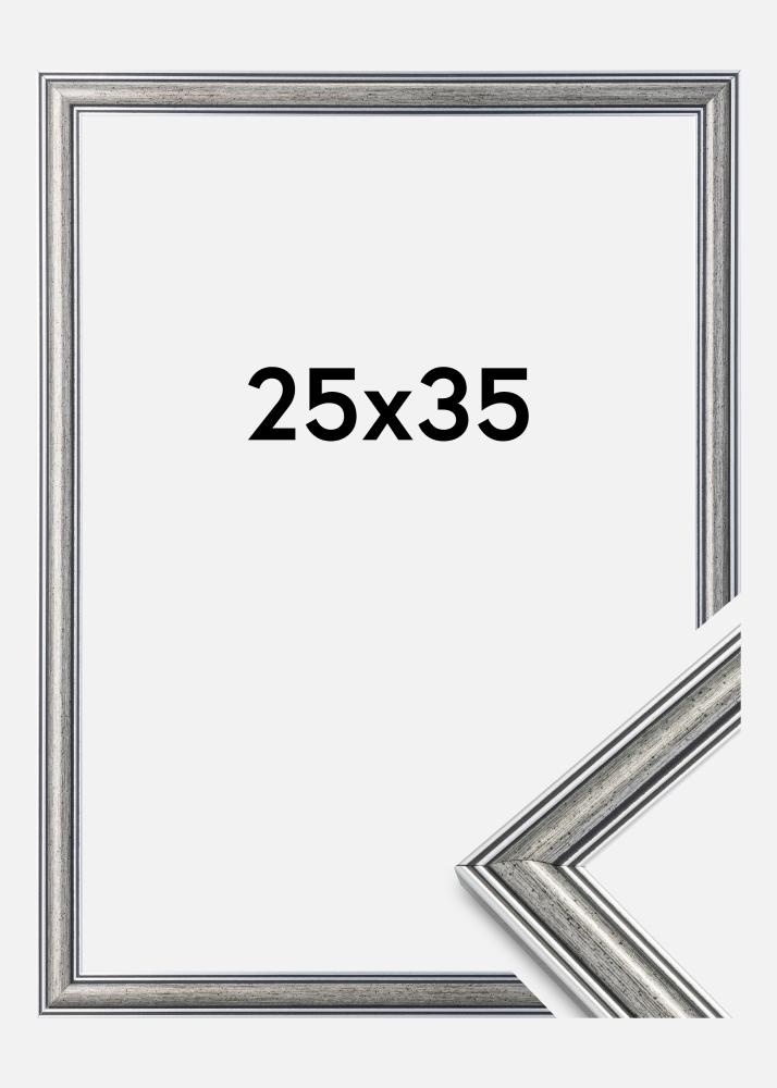 Spusťte výběr rámu »Frigg je stříbrný rám s černými liniemi a černě skrvnitými prvky. Skvěle se hodí, když hledáte široký tradiční stříbrný rám, který se hodí k mnoha typům obrázků a prostředí.