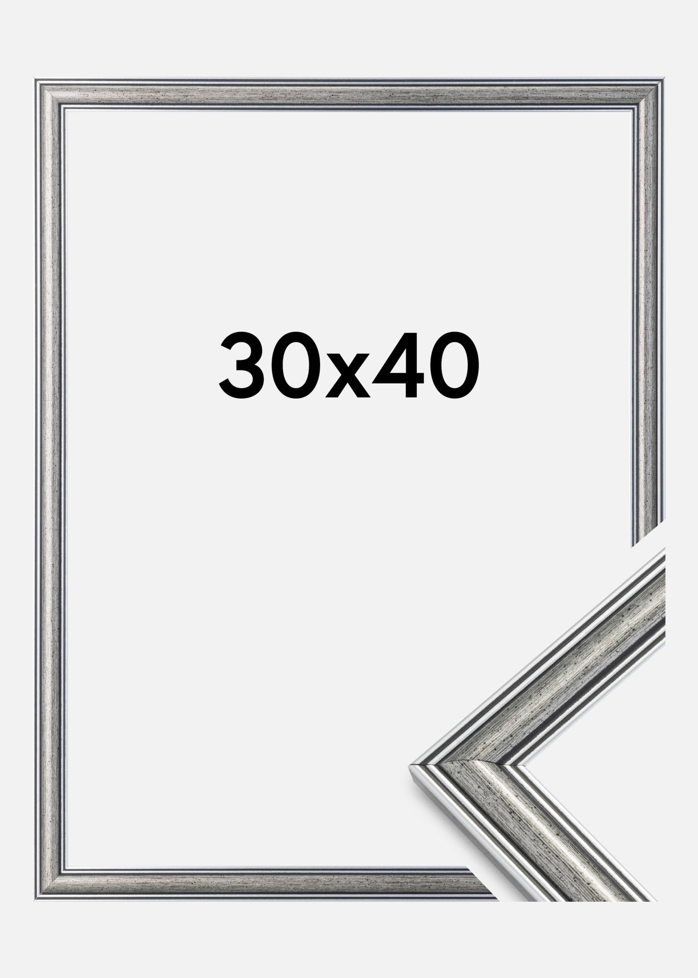 Spusťte výběr rámu »Frigg je stříbrný rámeček s černými liniemi a černě skvrnitými prvky. Skvěle se hodí, když hledáte široký tradiční stříbrný rámeček, který se hodí k mnoha typům obrázků a prostředí.