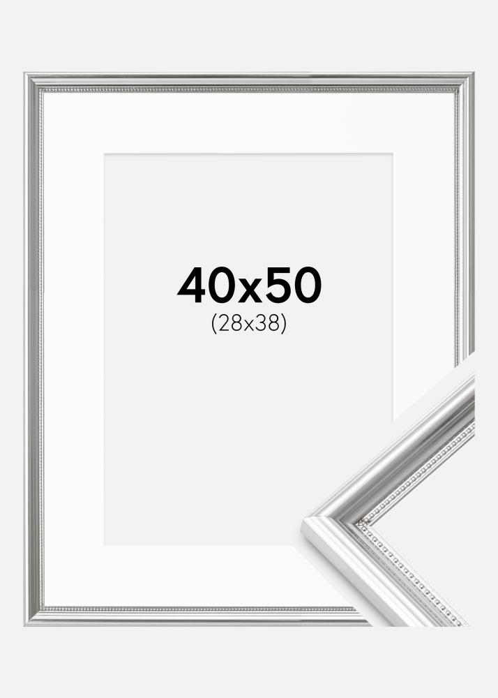 Rám Gala stříbro 40x50 cm - Pasparty Bílý 29x39 cm