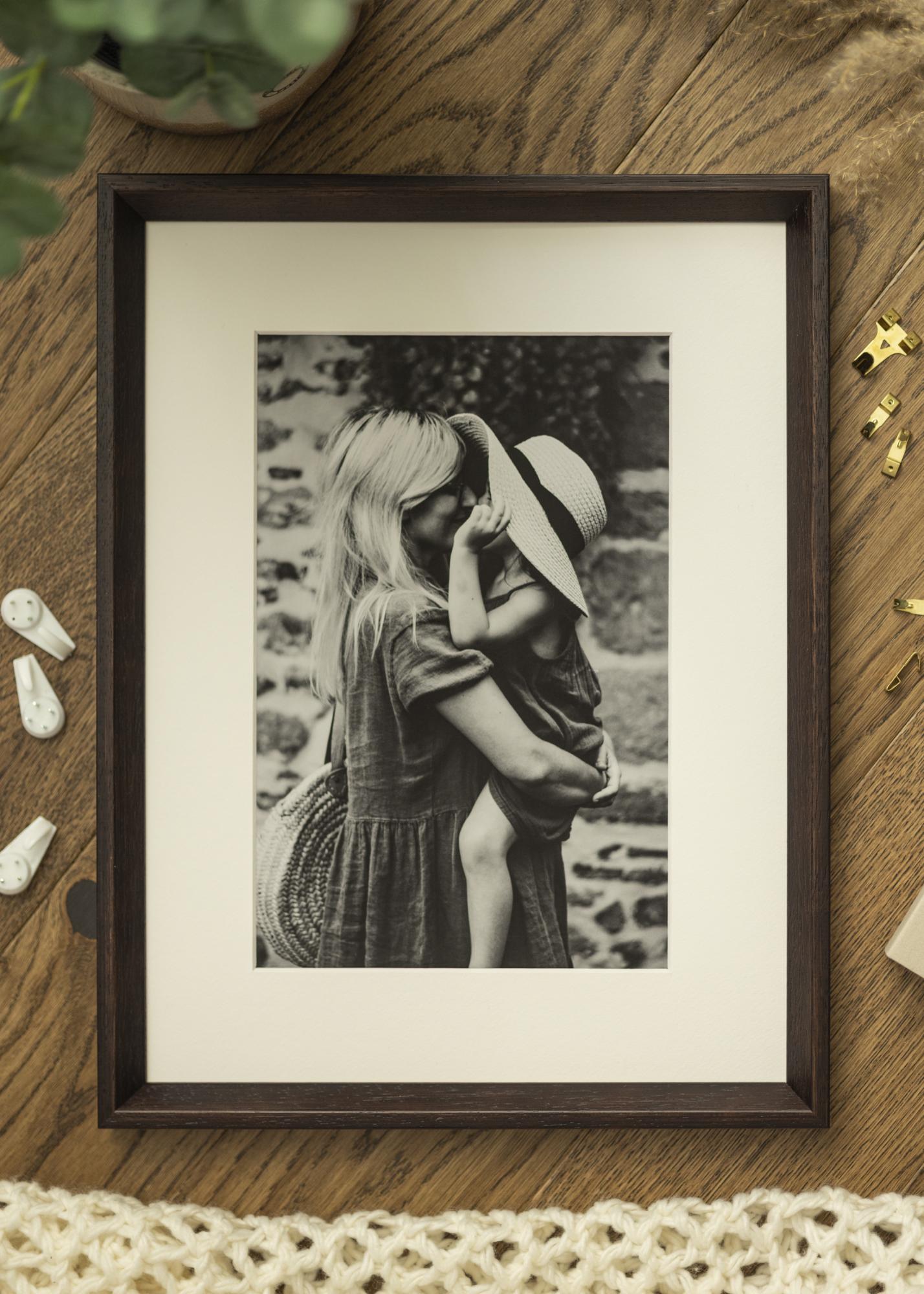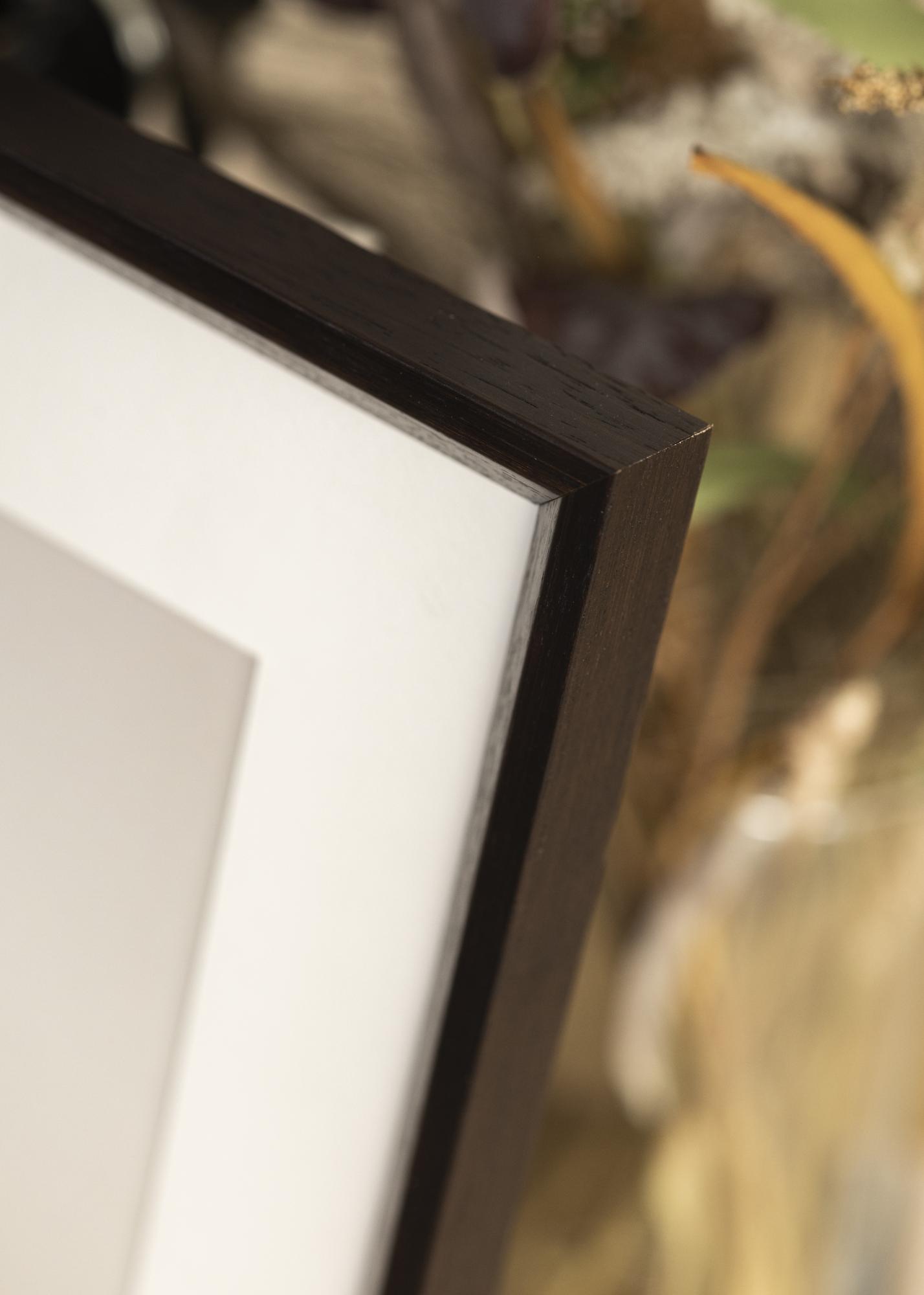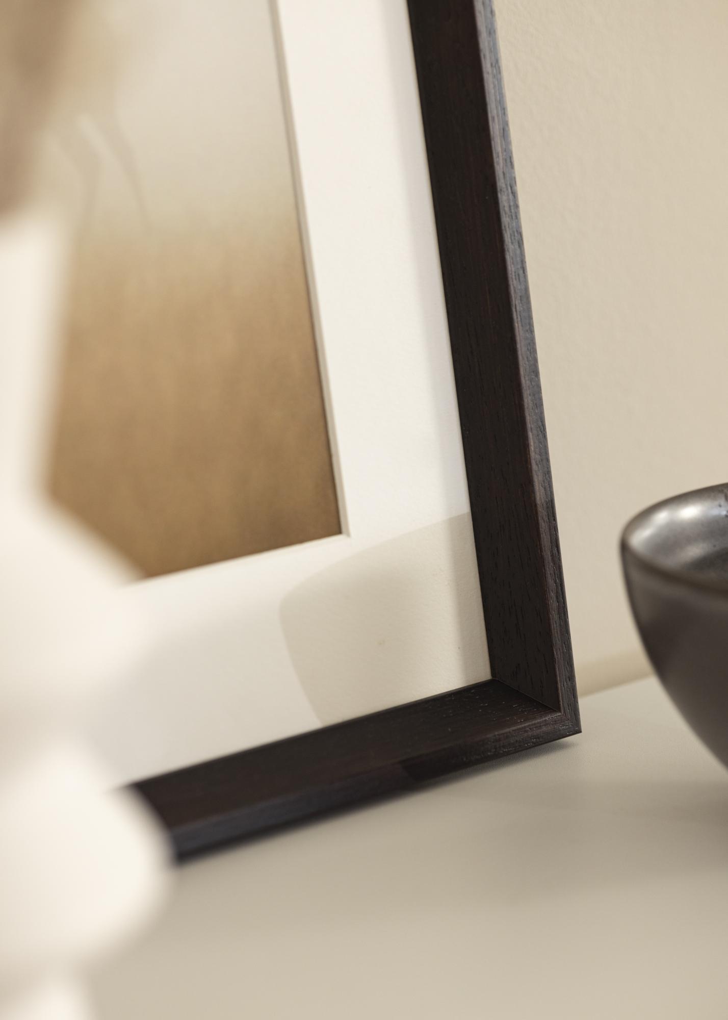 Globe akrylové sklo Espresso poskytuje vašim obrázkům velmi sofistikované rámování. Rám je vyroben ve Švédsku z pevného dřeva ayous, natřeného v příjemném espressově hnědém odstínu s elegantním lesklým povrchem. Speciální design, s 20 mm širokým dřevěným lištou a 45° okrajem směrem k motivu, dodává rámu velmi stylový výraz. Barva, spolu se sofistikovaným designem, činí rám vynikajícím jak samostatně, tak ve spojení s ostatními rámy v různých provedeních.