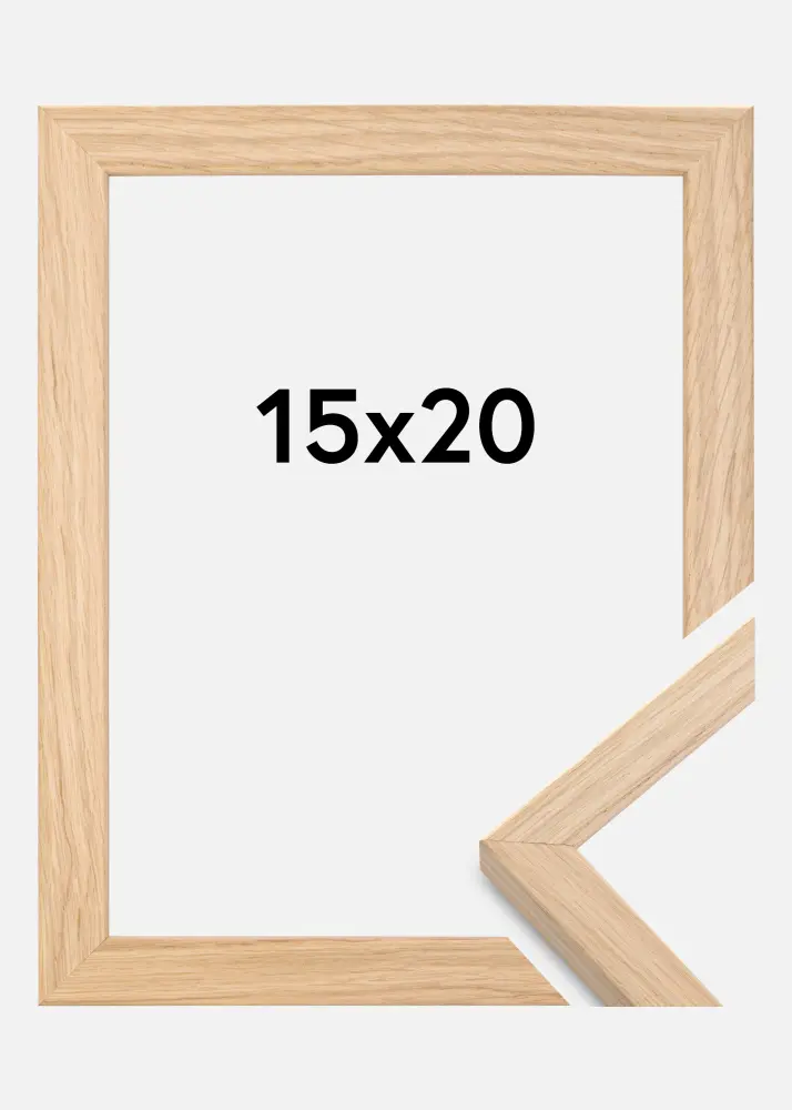 Grimsåker rám dub 22A 15x20 cm má vnitřní rozměry 15x20 cm, zatímco profil měří 1,7x2,25 cm.