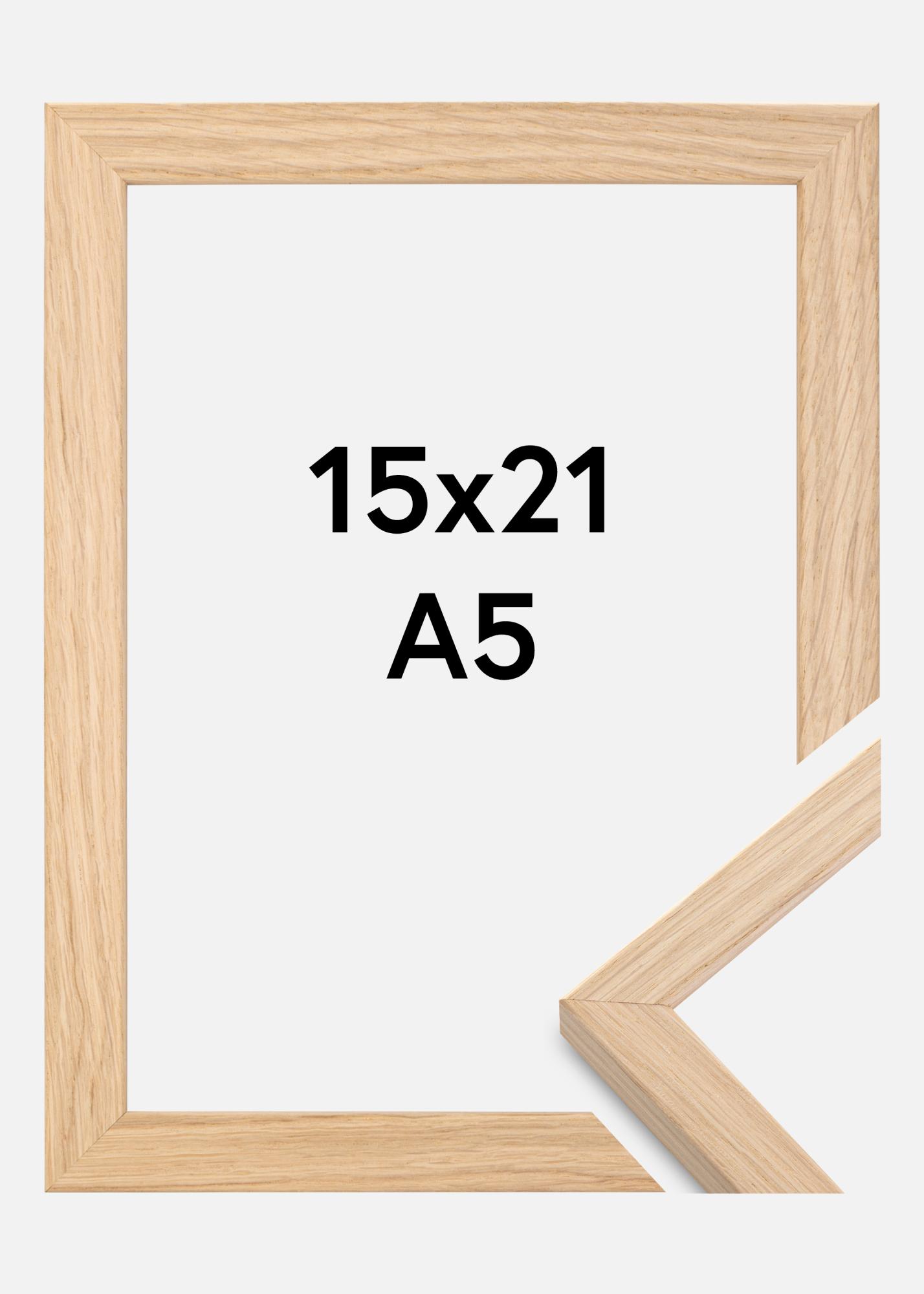 Grimsåker Rám Dub 22A 15x21 cm má vnitřní rozměry 15x21 cm, zatímco lišta měří 1,7x2,25 cm.