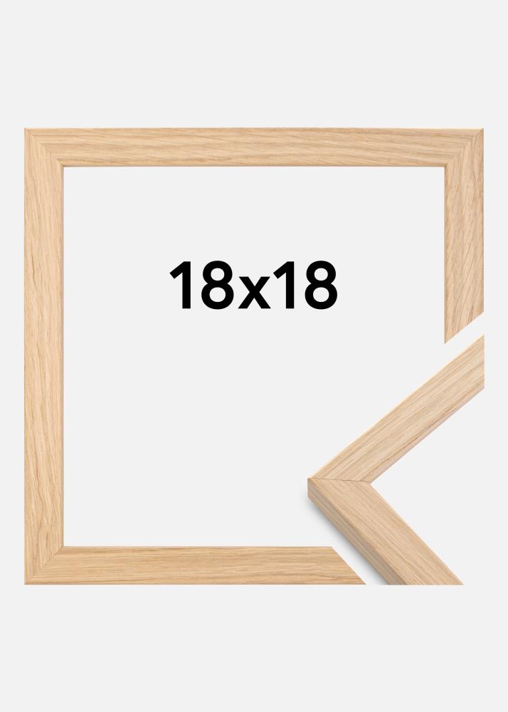 Rám Grimsåker Dub 22A 18x18 cm má vnitřní rozměry 18x18 cm, zatímco lišta měří 1,7x2,25 cm.