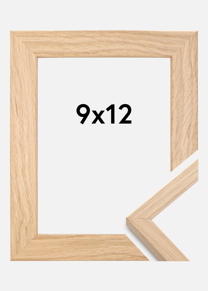 Grimsåker Rám Dub 22A 9x12 cm má vnitřní rozměry 9x12 cm, zatímco lišta měří 1,7x2,25 cm.