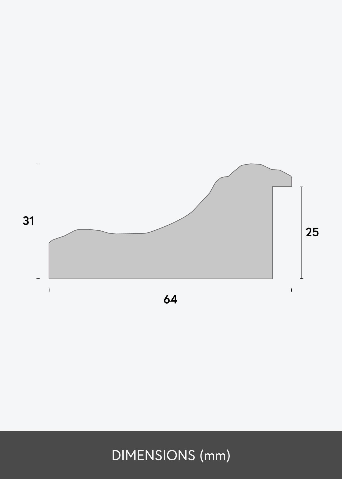 Tento rám má 64 mm širokou lištu a hloubku 31 mm, což poskytuje robustní a působivé rámování. Vyrobený z kompozitního materiálu, kombinuje odolnost se stylem. Design rámu z něj činí vynikající volbu pro zvýraznění všeho od rodinných fotografií po umělecká díla, a lze jej snadno přizpůsobit vašim specifickým potřebám.