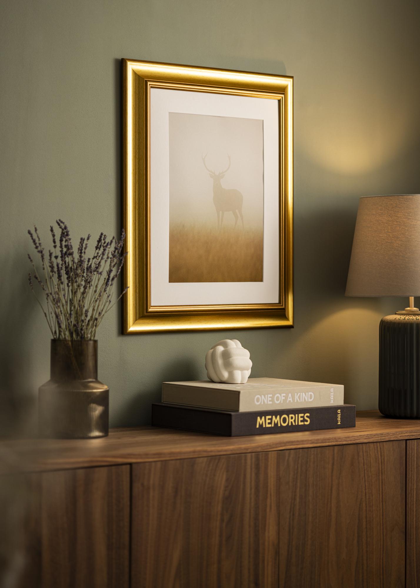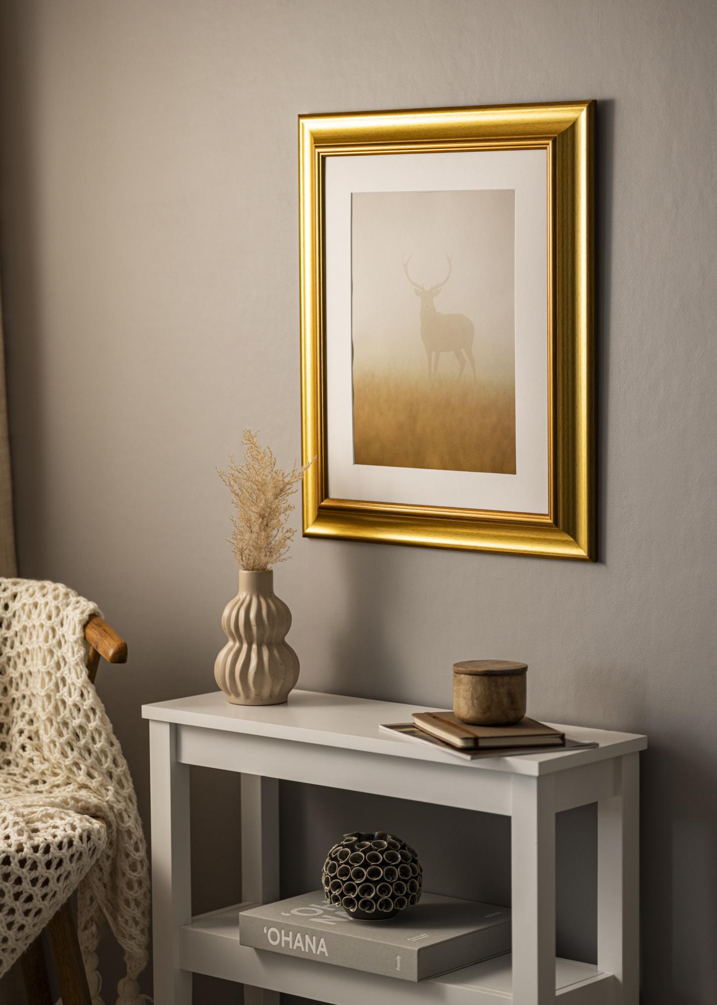 Rám Hampshire Zlato je ideálním řešením pro ty, kteří hledají elegantní a osobní rámování pro své fotografie nebo umělecká díla. Se svým výrazným zkosením a elegantním sklonem posiluje tento rám světelné odrazy způsobem, který skutečně zvýrazňuje motiv. Teplý, kartáčovaný zlatý povrch s jemnou texturou dřeva dodává exkluzivní pocit, který se hodí k moderním i klasickým interiérům.