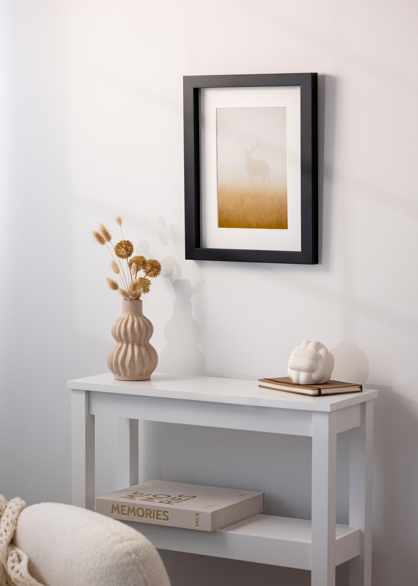 Rám Hathor Černý je rám na obrazy na míru, který se vyrábí v naší vlastní dílně, což vám umožňuje získat rámeček, který dokonale sedí pro vaše umělecké dílo nebo fotografii. S jeho černou barvou a elegantním designem se stává stylovým doplňkem všech typů interiérů. Matný povrch rámu dodává moderní pocit, který vkusně zdůrazňuje motiv.