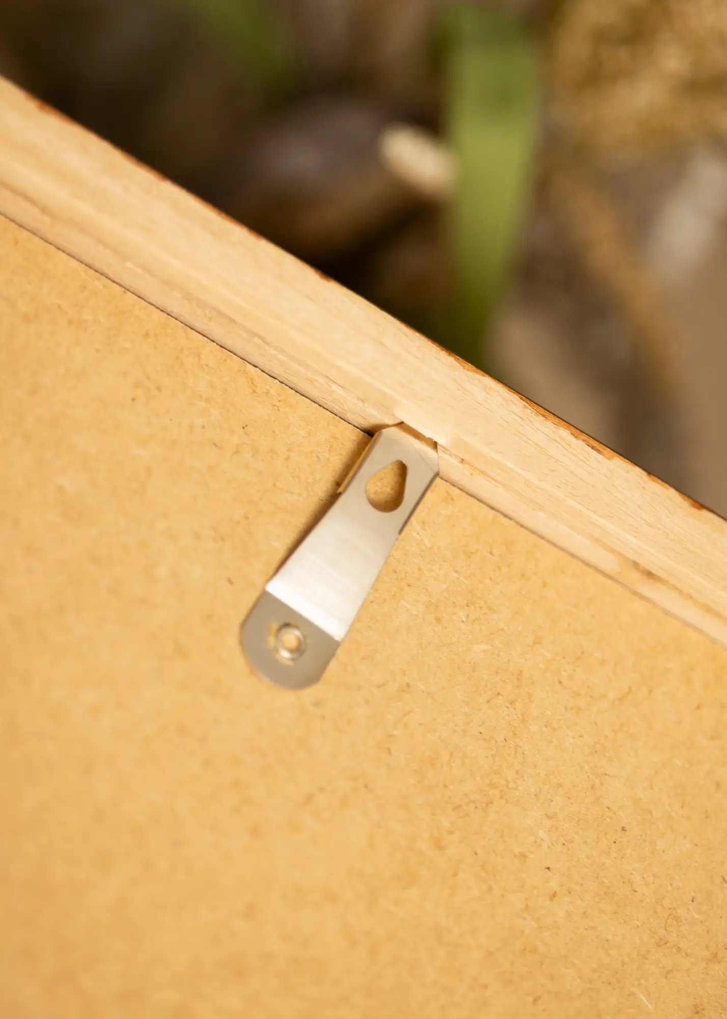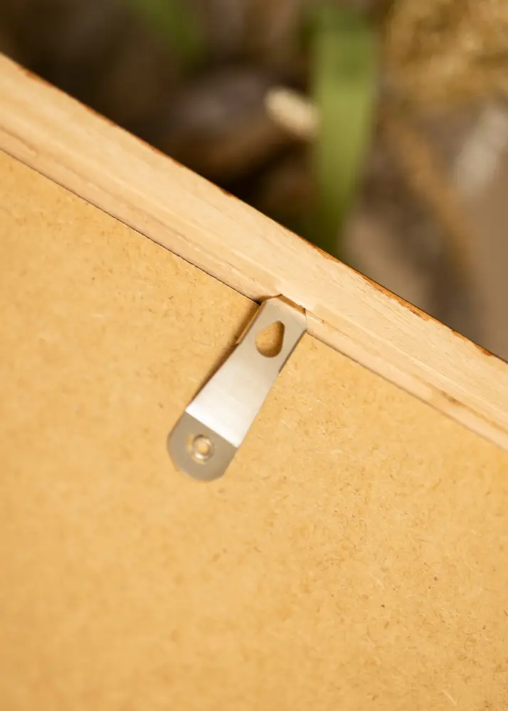 Vyrobeno z robustního ayousového dřeva, tento rám nabízí nejen esteticky přitažlivý design, ale také trvanlivou konstrukci. Navíc je rám vyrobený v Nizozemsku a je vybaven praktickými kovovými závěsy na zadní straně, což umožňuje snadné zavěšení jak horizontálně, tak vertikálně podle vašeho přání.