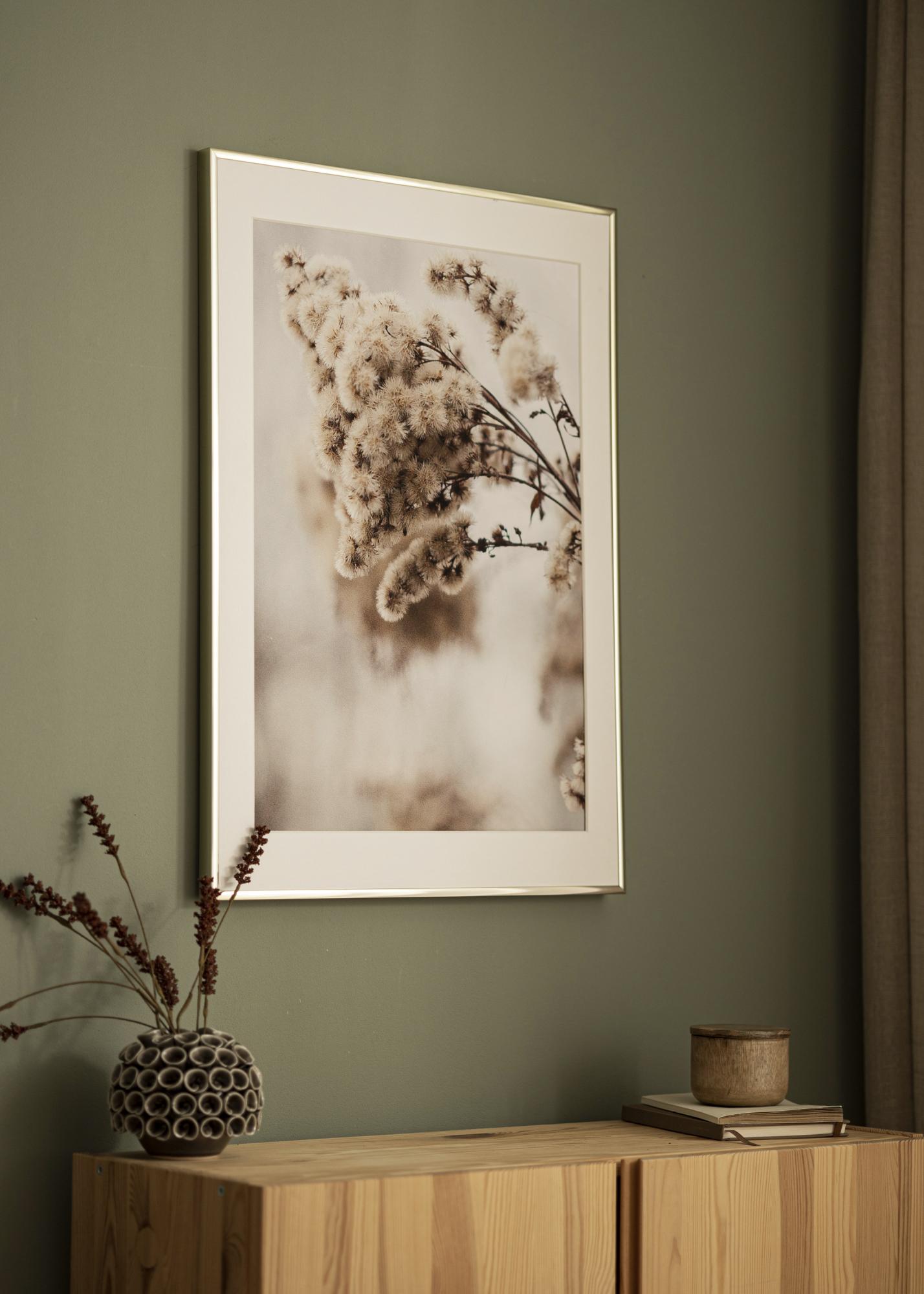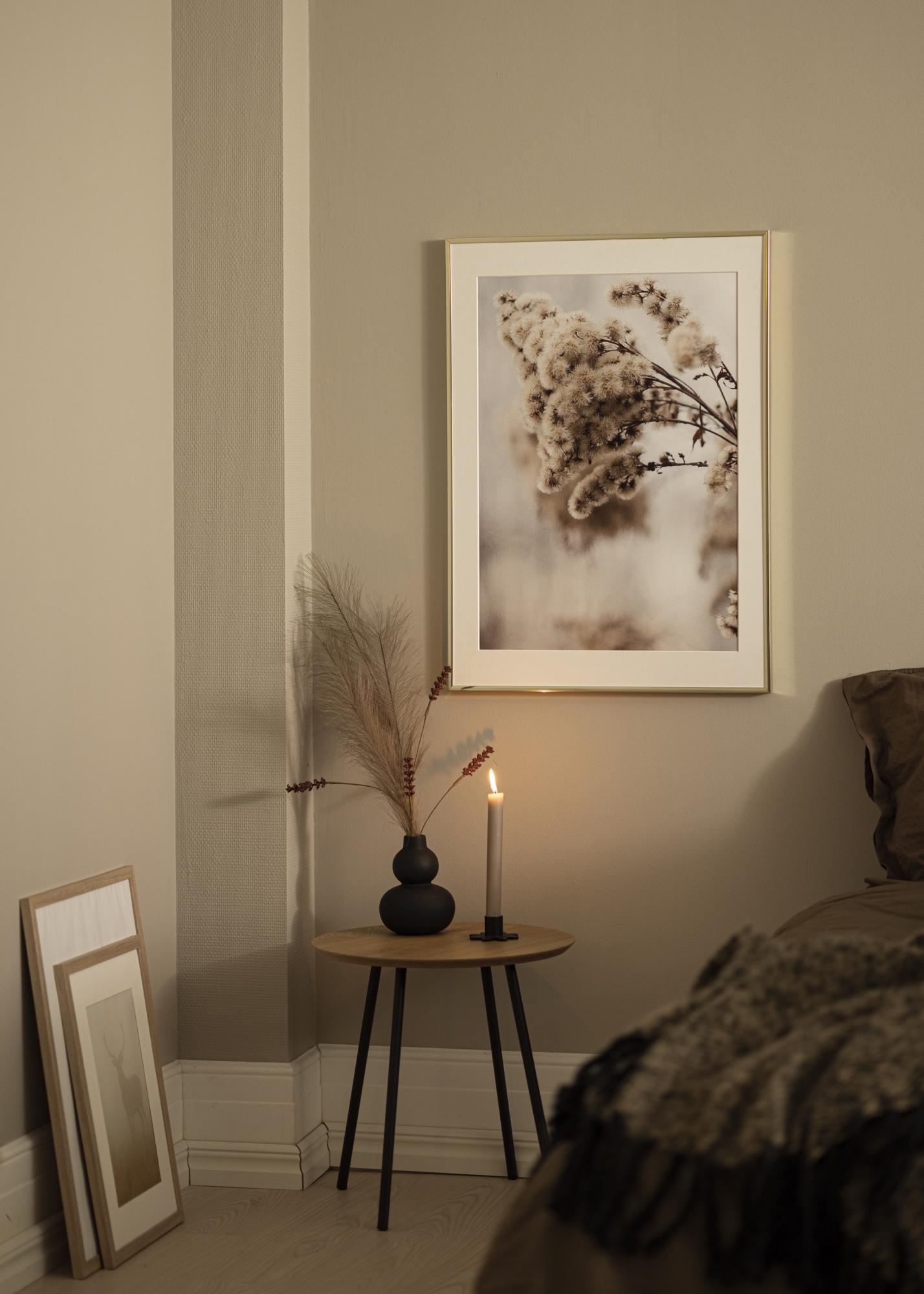 Toto je tenký hliníkový rám ve stylové lesklé zlaté barvě. Tenká lišta rámu, pouze 9 mm, zajišťuje, že hlavní pozornost bude věnována vašim motivům. Je to ideální, pokud máte trendové plakáty nebo fotografie blízkých, které chcete zviditelnit na stěně.