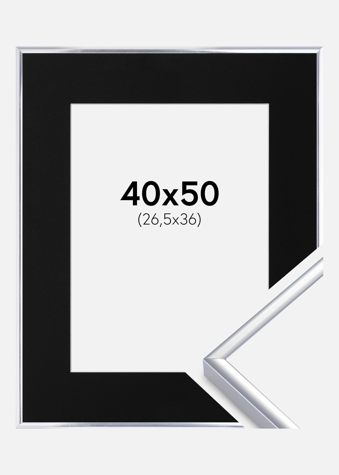 Rám Hliník Leskle Stríbrná 40x50 cm - Pasparta Cerná 27,5x37 cm