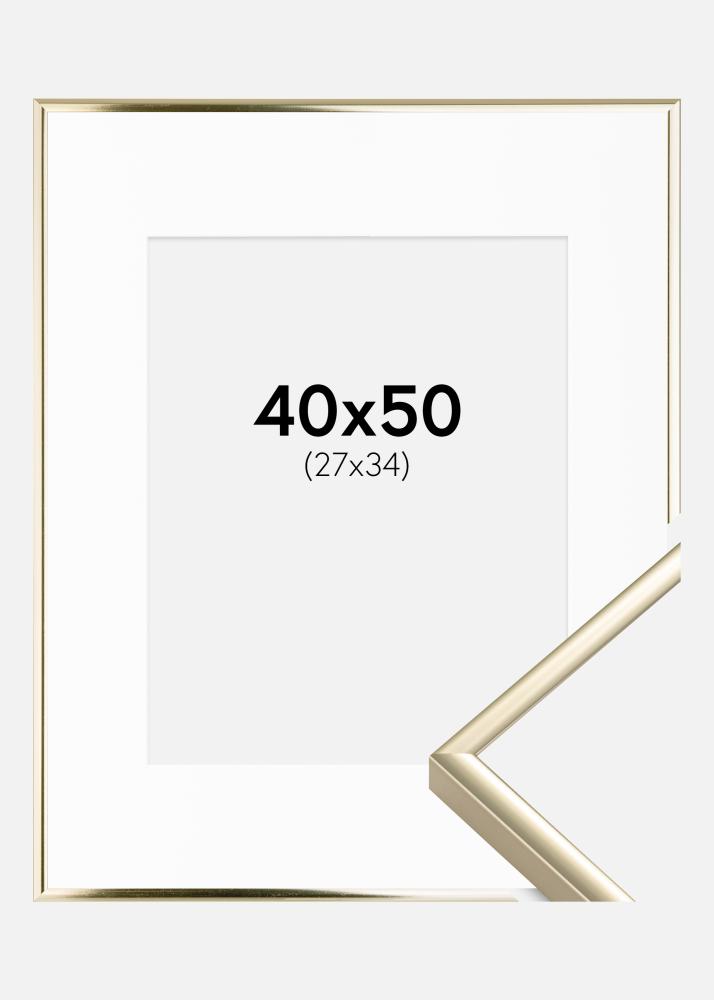 Rám Hliník Leskle Zlatá 40x50 cm - Pasparta Bílá 28x35 cm