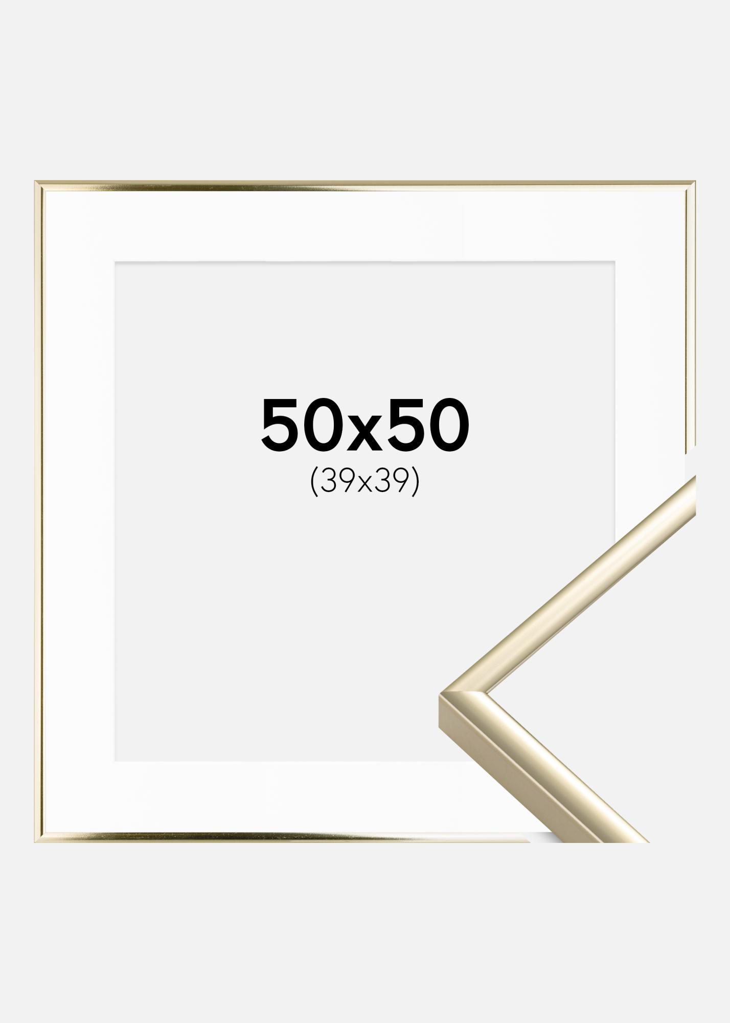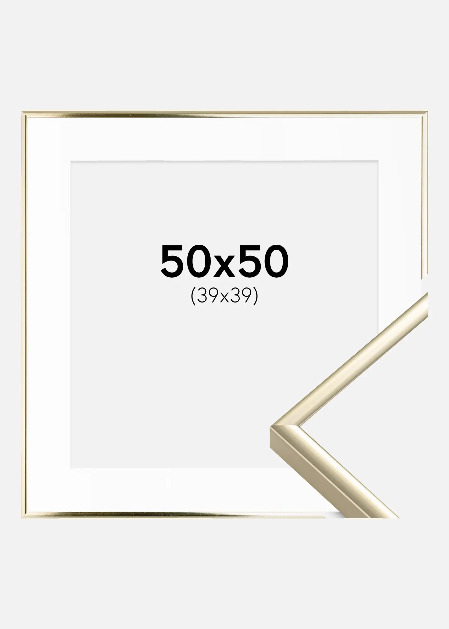 Rám Hliník Leskle Zlatá 50x50 cm - Pasparta Bílá 40x40 cm
