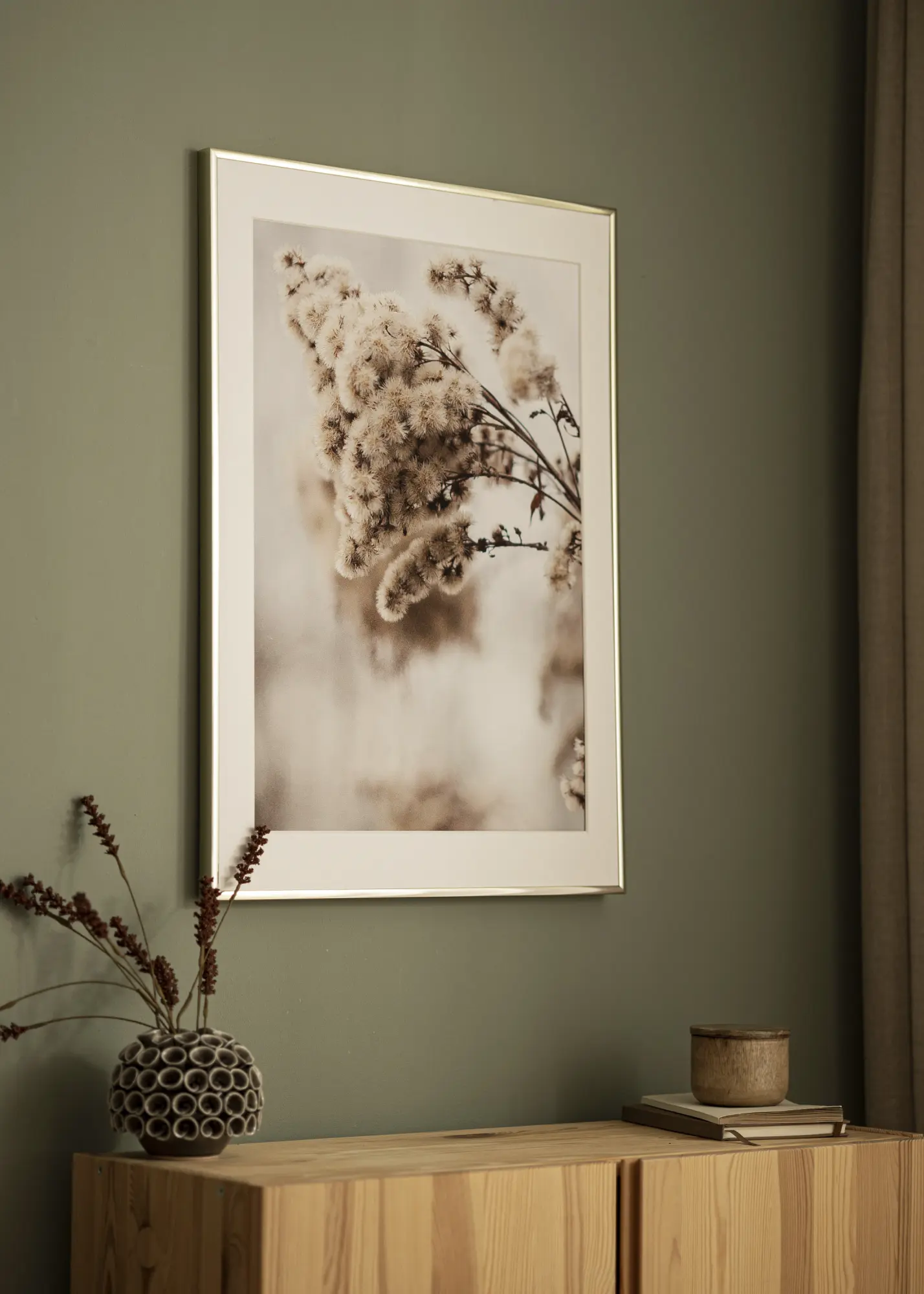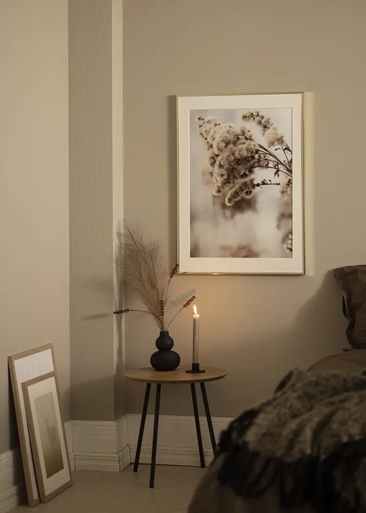 Dodejte svým obrazům rámování, které si zaslouží, s naším elegantním zlatým rámem s bílou paspartou. Tento fotorámeček je ideální pro zdůraznění vašeho obrázku v rozměru 40x40 cm, přičemž bílá pasparta dodává profesionální a hluboký dojem. S šířkou rámu jen 9 mm a hloubkou 19 mm se vaše fotografie stává středem pozornosti, aniž by rám dominoval.