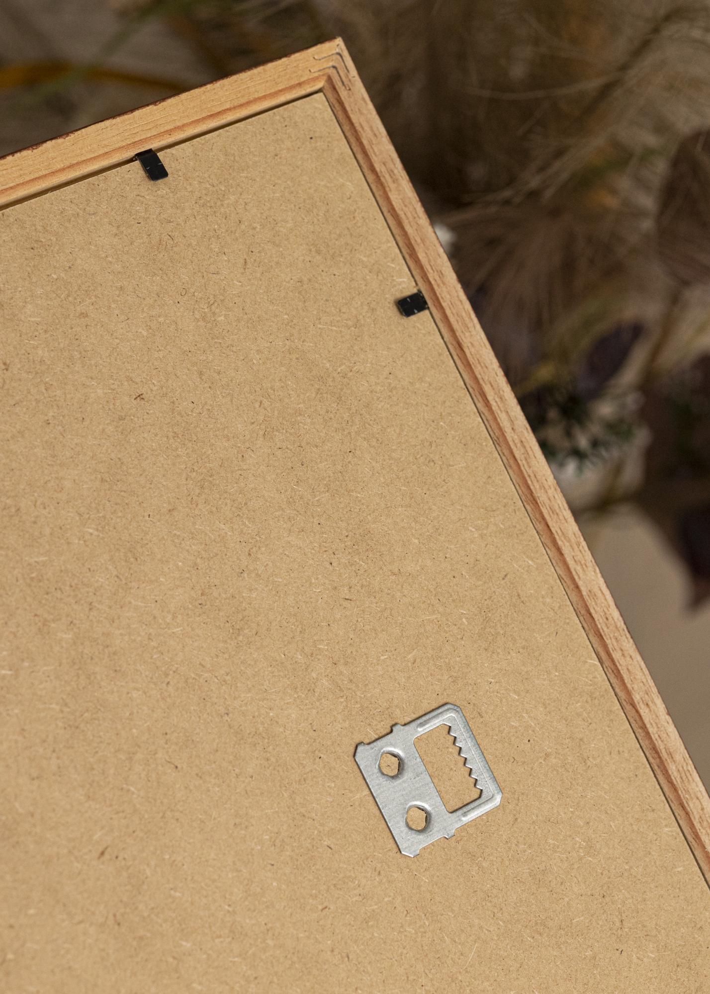 Rám je vybaven kovovými závěsy na zadní straně, což umožňuje jeho zavěšení jak horizontálně, tak vertikálně.