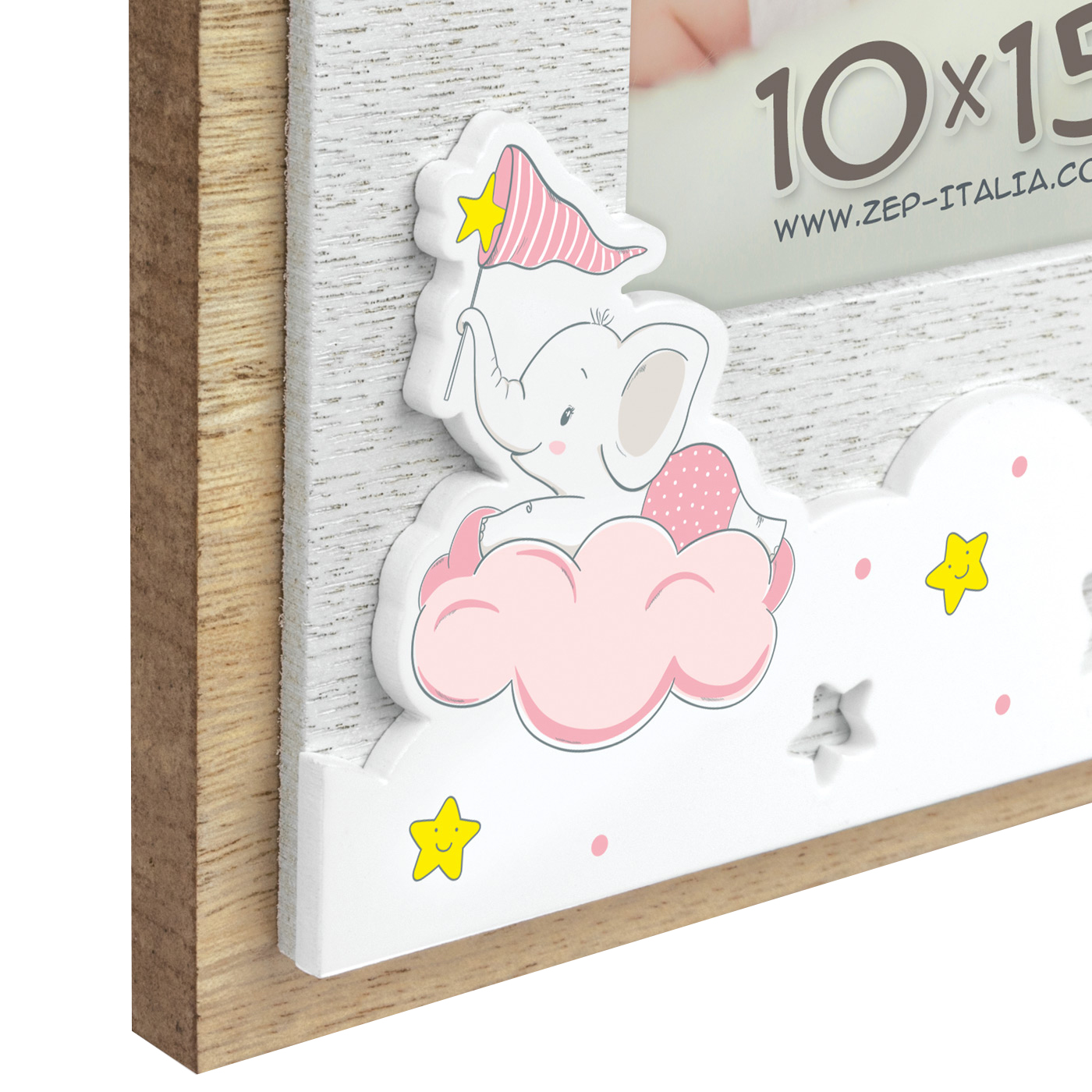Přeměňte svůj domov na osobní galerijní zeď s tímto okouzlujícím fotorámečkem, který zdůrazňuje malé okamžiky života. S rozměry 10x15 cm je ideální pro uchování vzpomínek na ty nejmenší. Tento rámeček je ozdoben roztomilým dětským tématem, včetně sladkého slona, růžových vzorů a malých hvězdiček, které společně vytvářejí teplou a láskyplnou atmosféru.