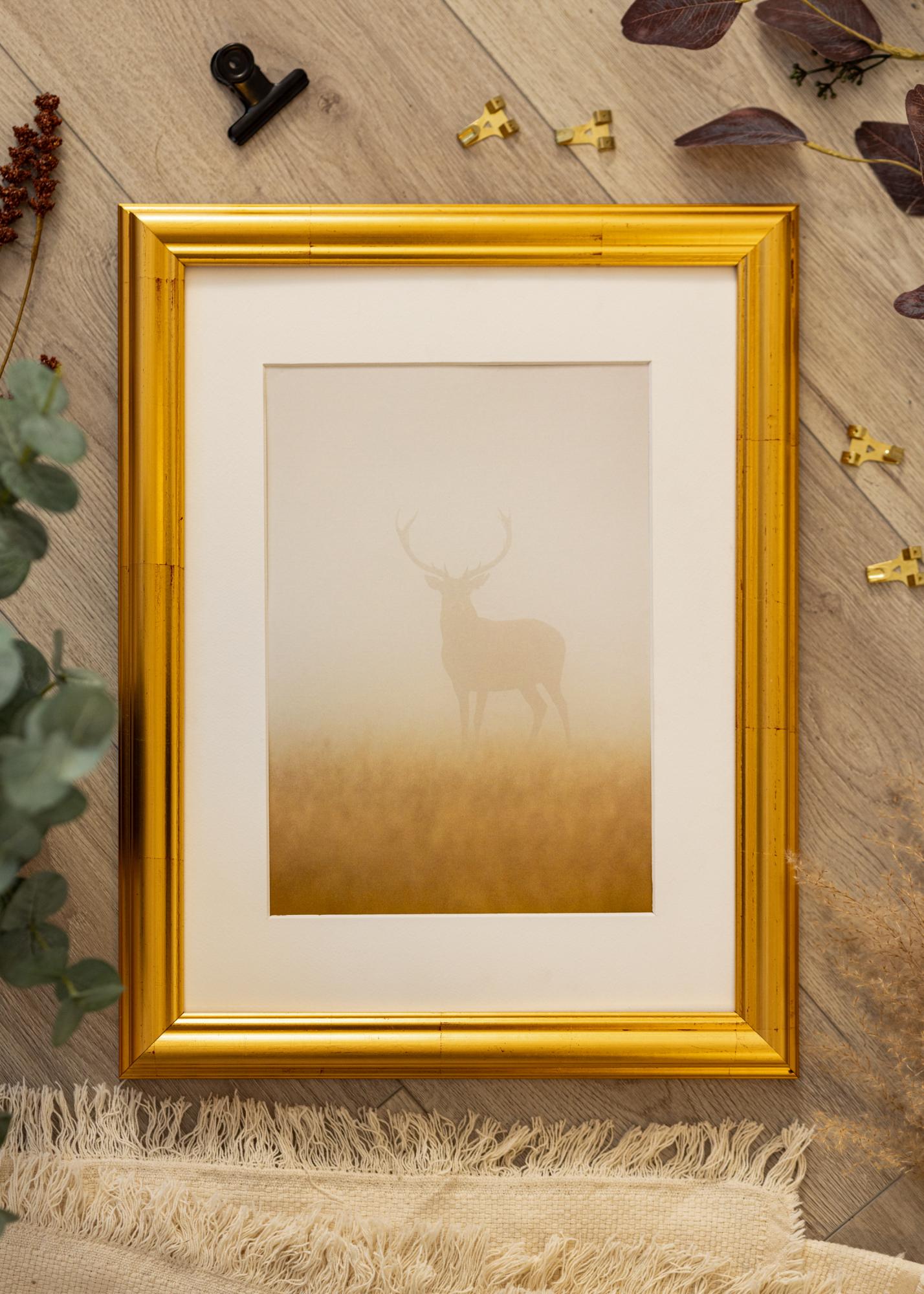 Rám Mars Gold je elegantní a všestranný rám na obrazy, který se vyrábí v naší vlastní rámové dílně. Se svou zlatou barvou a antikpatinovaným povrchem nabízí tento rám nadčasovou krásu, která zvýrazní každé umělecké dílo nebo fotografii. Měkce zakřivený profil a jemné praskliny dodávají rámu autentický vintage pocit, zatímco drobné tmavé prvky přispívají k jeho jedinečnému charakteru.