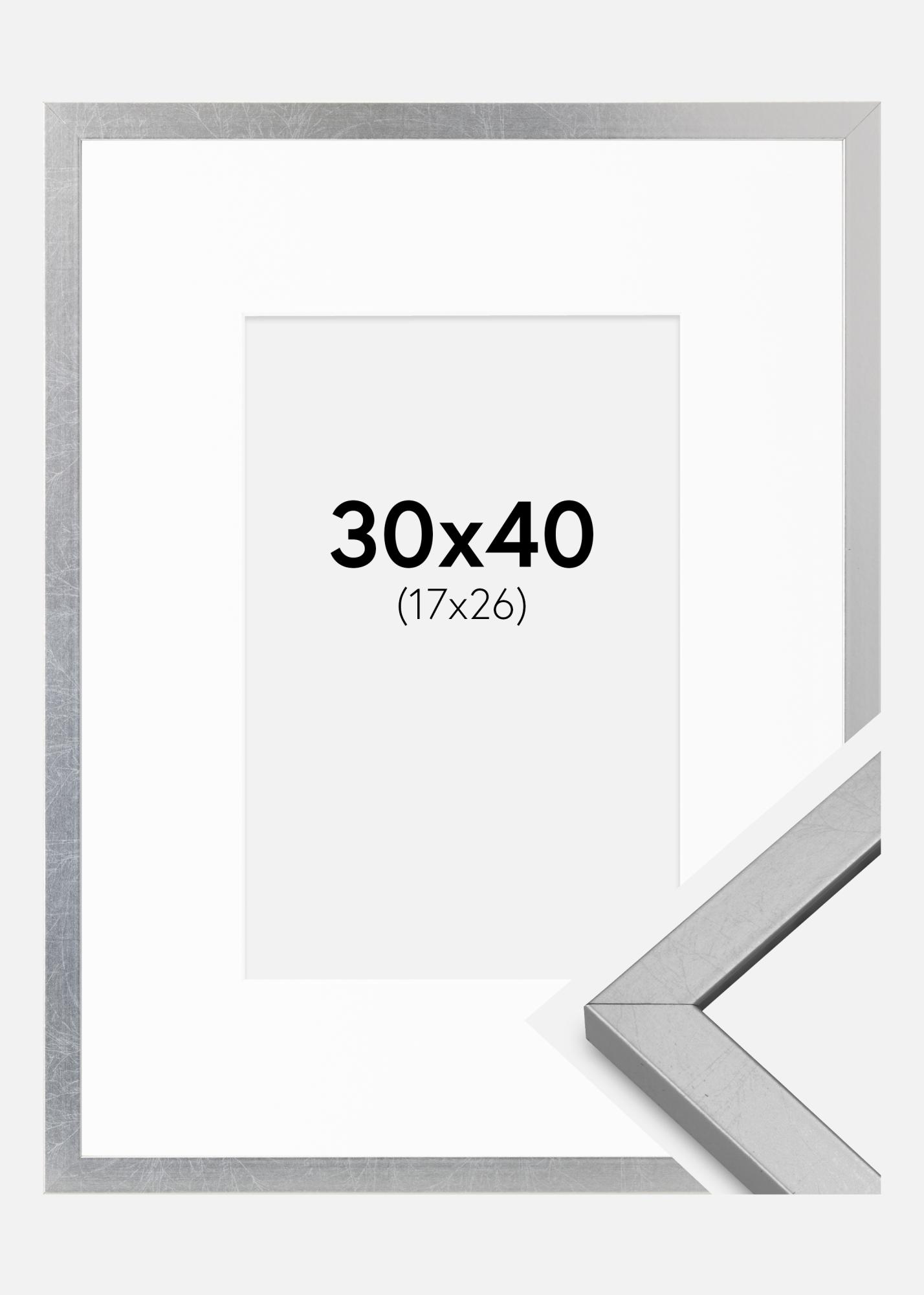 Rám Minerva stříbro 30x40 cm - Pasparty Bílý 18x27 cm