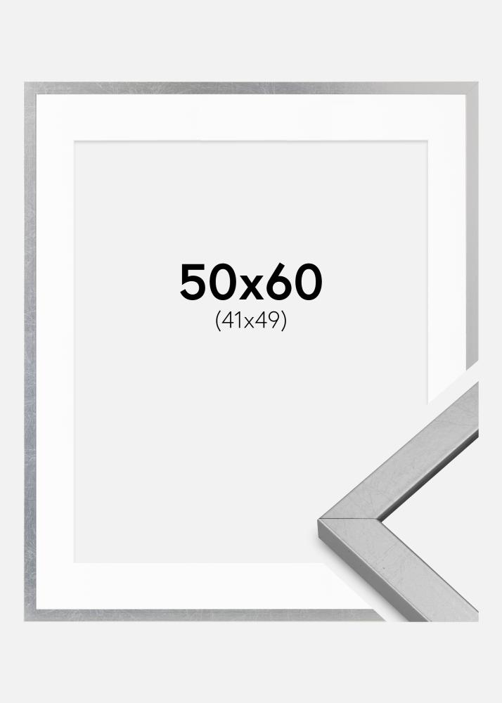 Rám Minerva stříbro 50x60 cm - Pasparty Bílý 42x50 cm