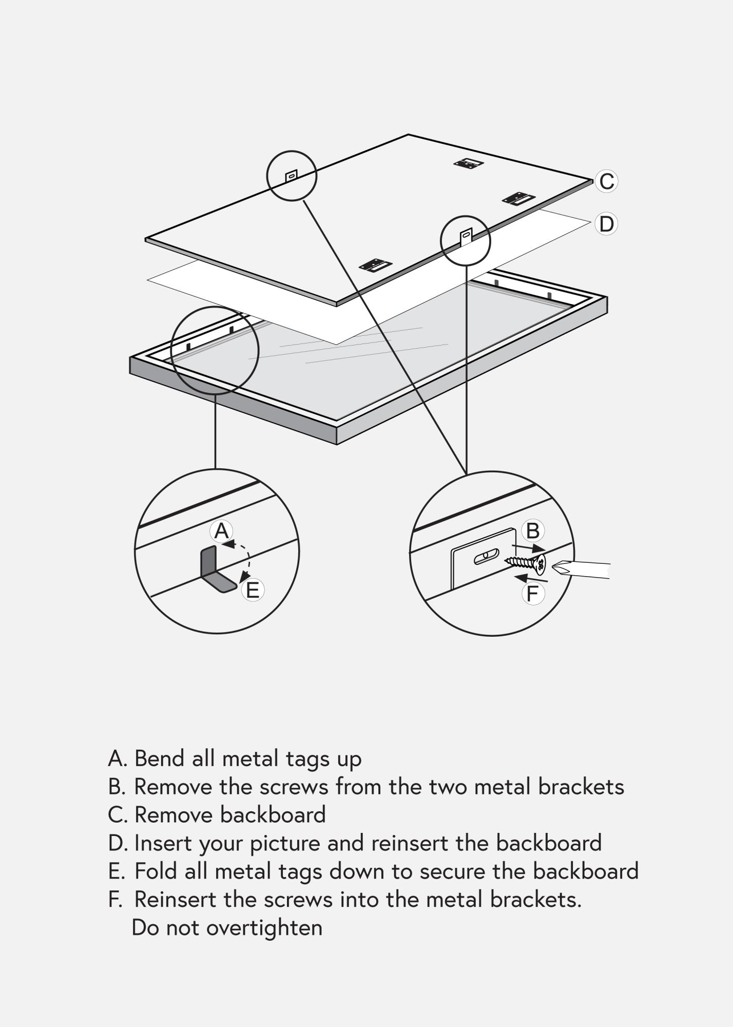 Tento rám na obrazy je vybaven kovovými věšáky na zadní straně, což usnadňuje zavěšení jak horizontálně, tak vertikálně. To vám dává flexibilitu přizpůsobit si dekoraci stěn podle svých potřeb a přání. Akrylátové sklo rámečku je křišťálově čisté a netříštivé, což zajišťuje, že vaše obrázky budou chráněny a zároveň prezentovány co nejlepším možným způsobem.