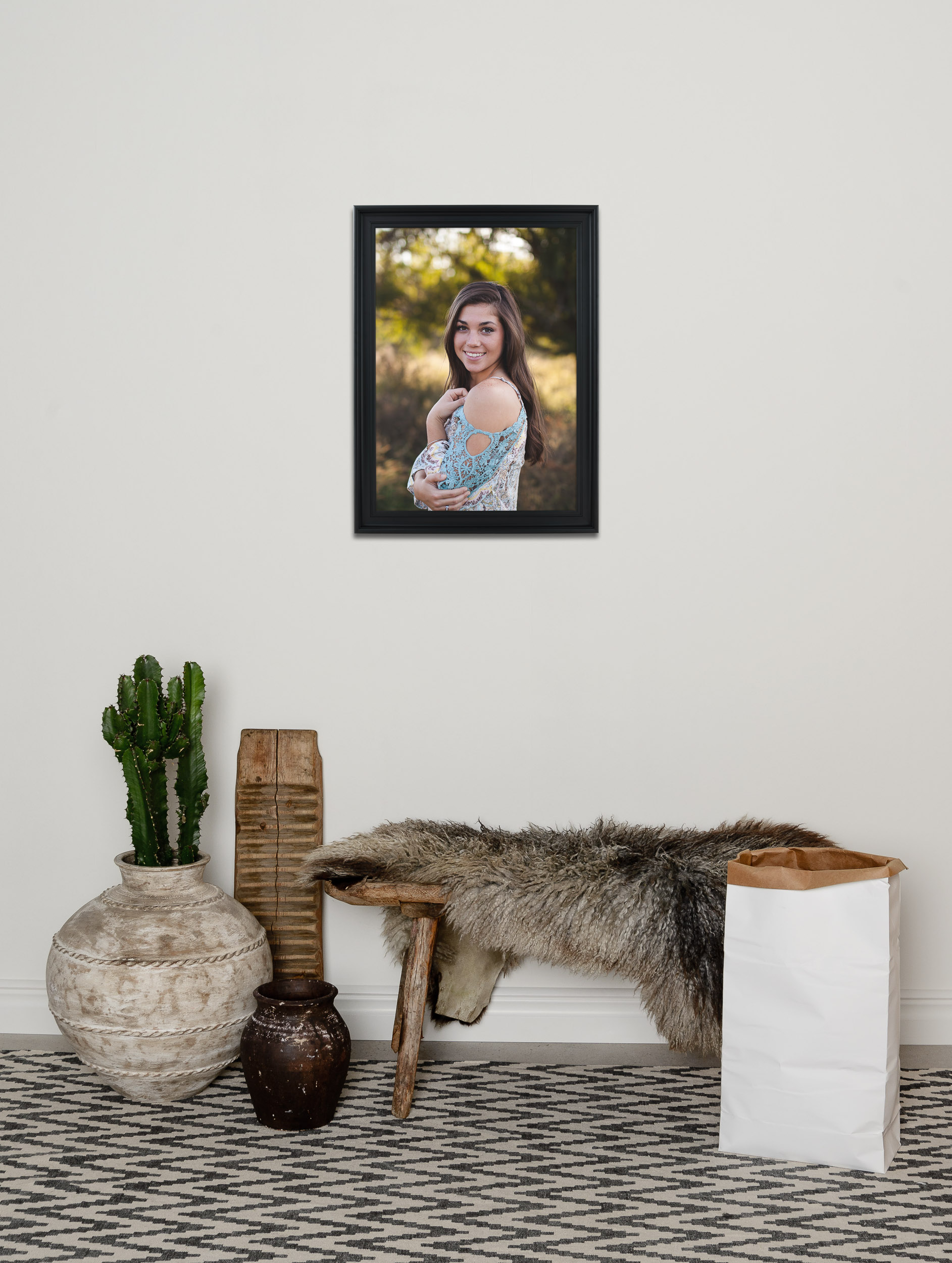 Díky přiloženým kovovým závěsům na zadní straně můžete snadno zavěsit svůj rám horizontálně nebo vertikálně, v závislosti na orientaci vašeho uměleckého díla. Vnější rozměry rámu jsou 34,4x40,4 cm, což z něj dělá výrazný prvek v místnosti.
