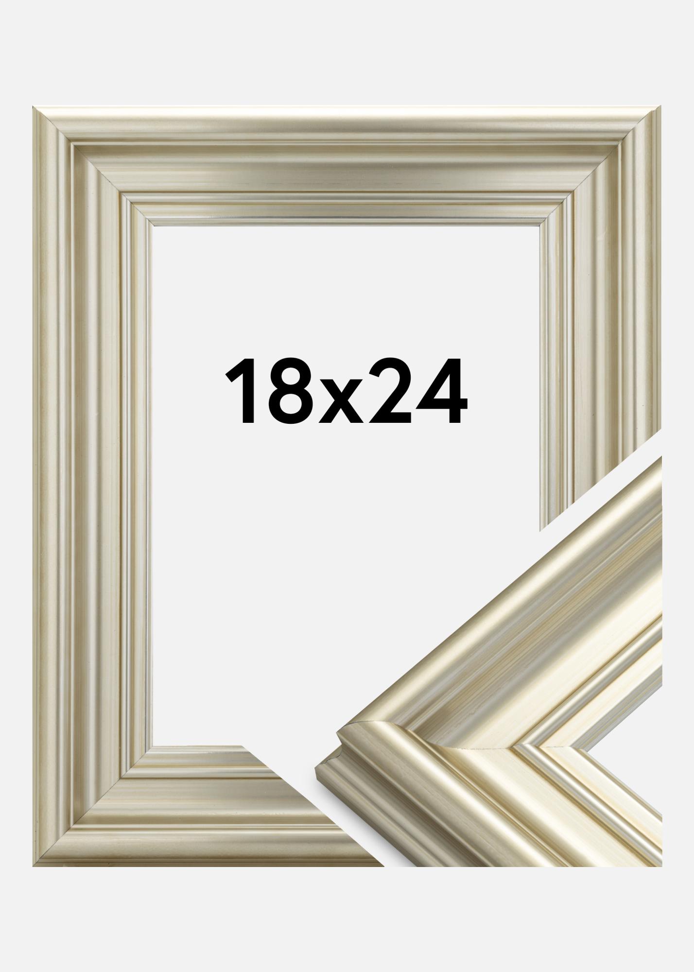 Mora Premium Silver je jedním z našich nejlepších stříbrných rámů. Vyrobeno ze dřeva z našich krásných švédských lesů a sestaveno v naší vlastní rámárské dílně. To znamená, že můžeme slíbit kvalitu nad rámec běžného. Rám má jemně stříbrný profil ve starém malovaném stylu o šířce celých 57 mm. Perfektní pro vaše nejlepší fotografie!