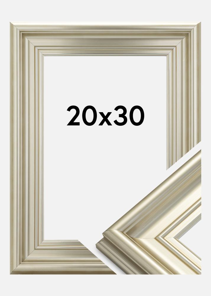 Mora Premium Silver je jeden z našich nejkvalitnějších stříbrných rámů. Vyrobený ze dřeva z našich krásných švédských lesů a smontovaný v naší vlastní rámové dílně. To nám umožňuje slíbit kvalitu nad rámec běžného. Rám má jemně stříbrný profil ve starém malovaném stylu s šířkou plných 57 mm. Perfektní pro vaše nejkrásnější fotografie!
