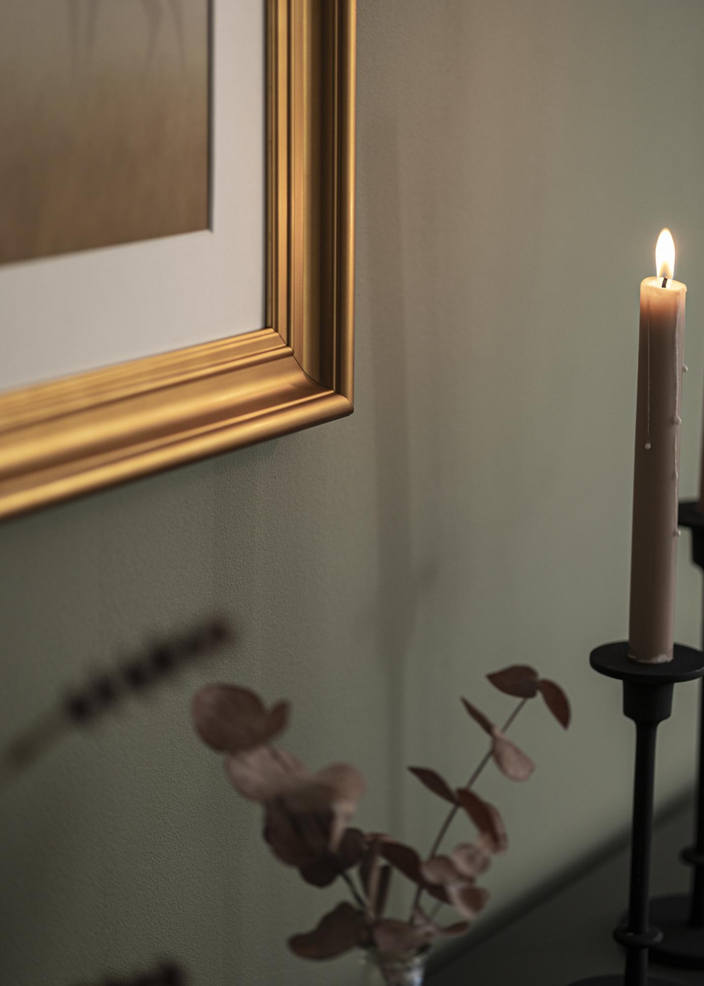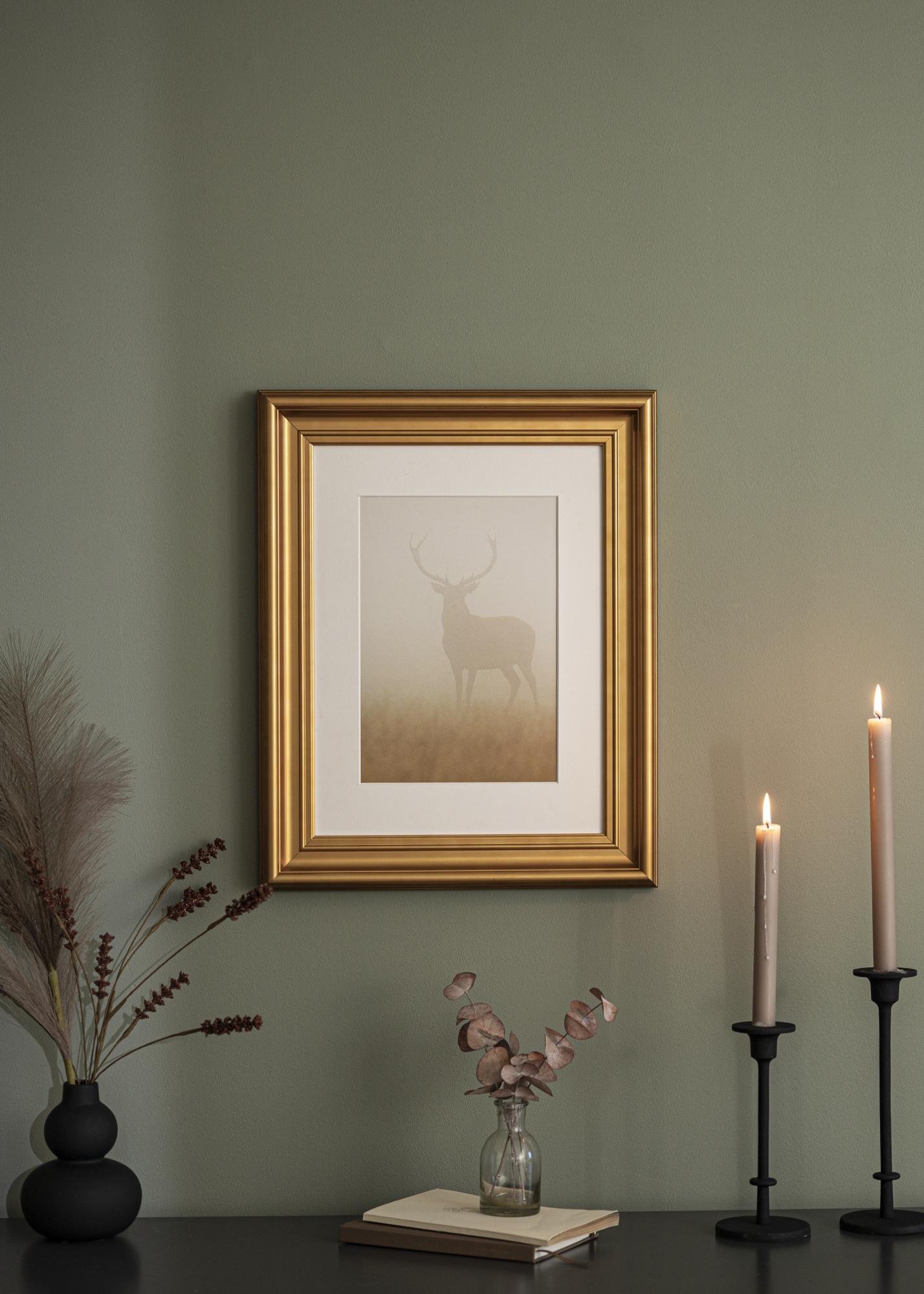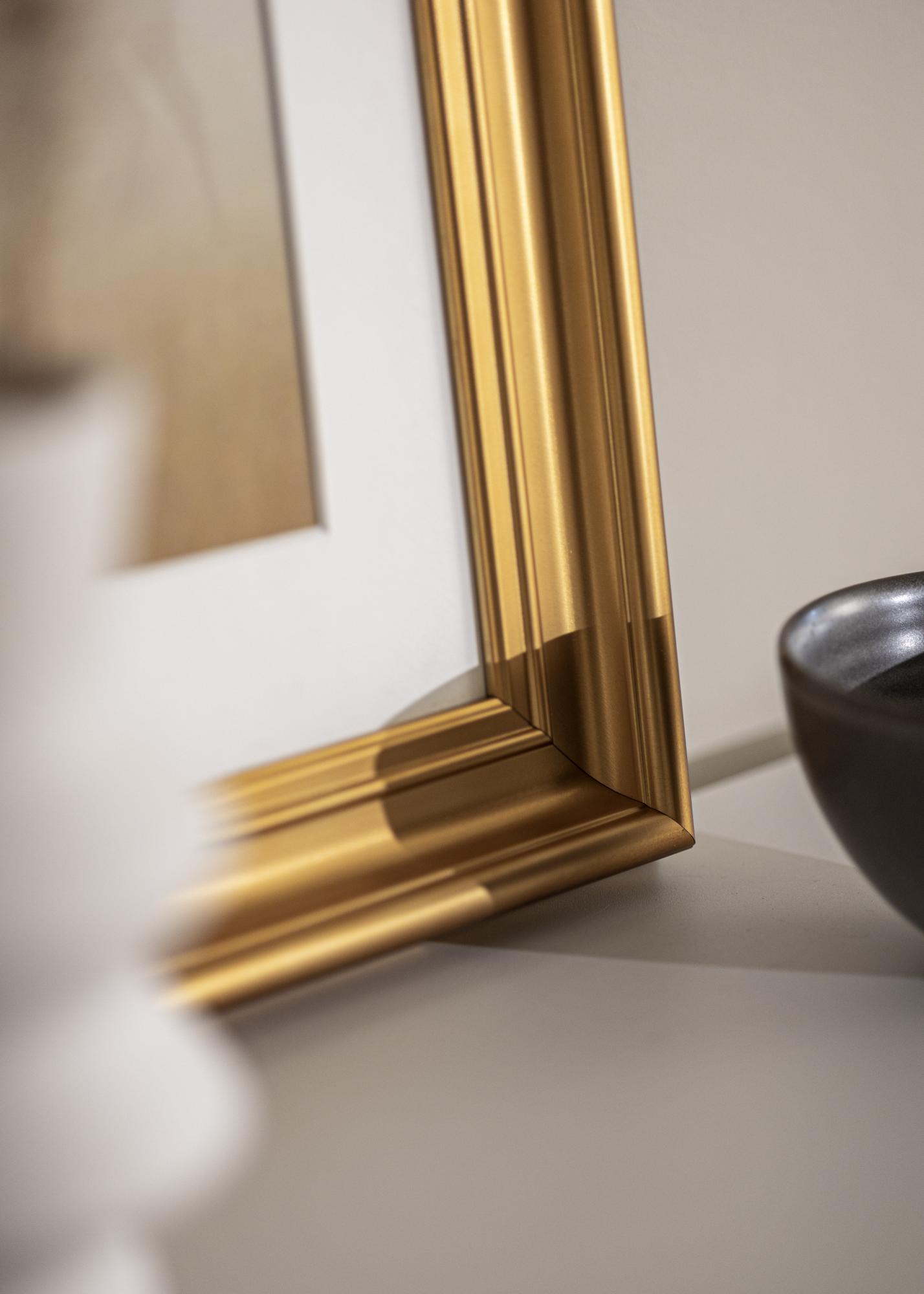 Mora Premium Zlatá je jedním z našich nejlepších rámečků na obrazy. Vyroben z dřeva z našich krásných švédských lesů a sestaven v naší vlastní dílně. To nám umožňuje slíbit kvalitu nad rámec běžných standardů. Rám má jemně zlato zbarvený profil ve starobylém malovaném stylu s šířkou celých 57 mm. Perfektní pro vaše nejcennější fotografie!